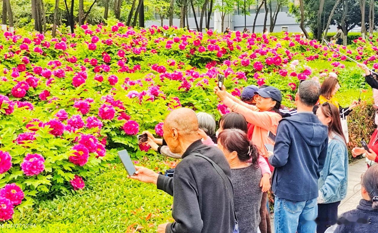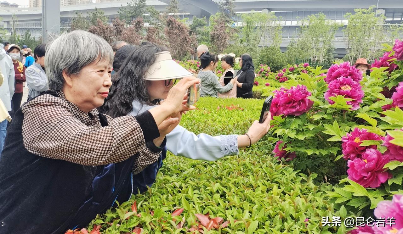 西安市金光门牡丹苑2万株牡丹花盛开市民游客爆棚争相赏花留影