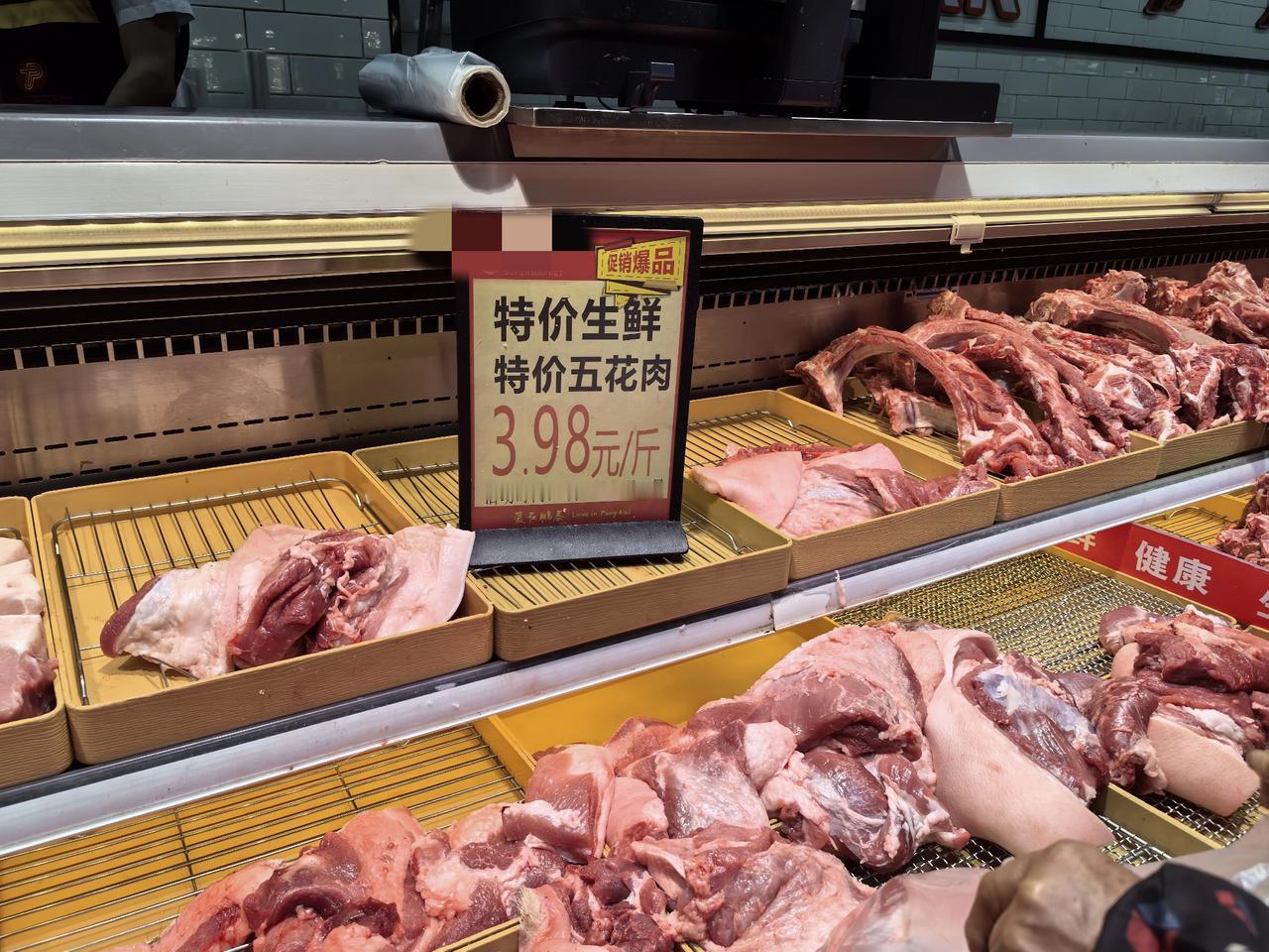 今天在我们县城一家超市里面看到特价五花肉只要3.98元一斤,这个价格比很多蔬菜都要低,真的不敢相信。