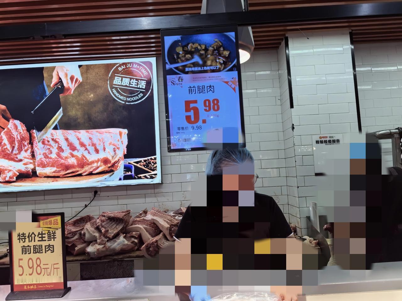 除了特价五花肉外,特价前腿肉也只要5.98元一斤,这个价格也很低了。