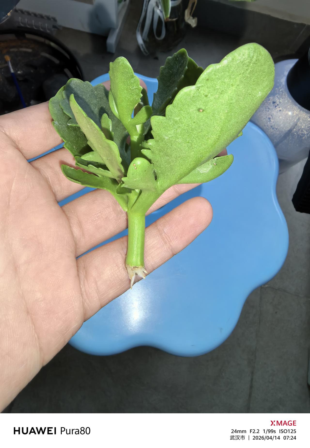 我剪下来的长寿花枝条开始生根了! 我并没有对它进行什么处理, 甚至没有把它扦插在