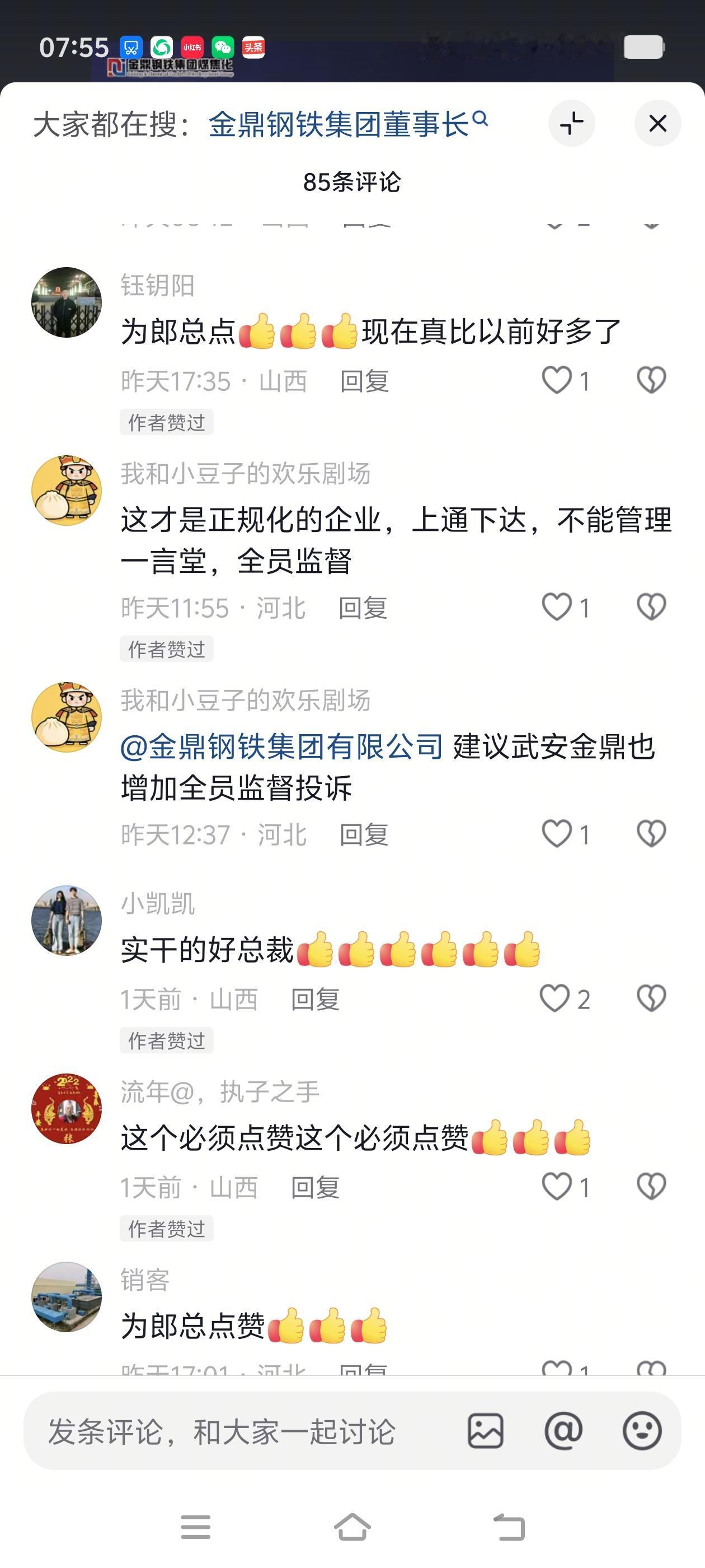 那些胡作非为的中层管理者,这下彻底不敢乱来了,员工有了撑腰的,企业风气直接正起来!真心希望总裁能一直开着留言,持续听一线真心话,补上武安钢铁管理的老短板。