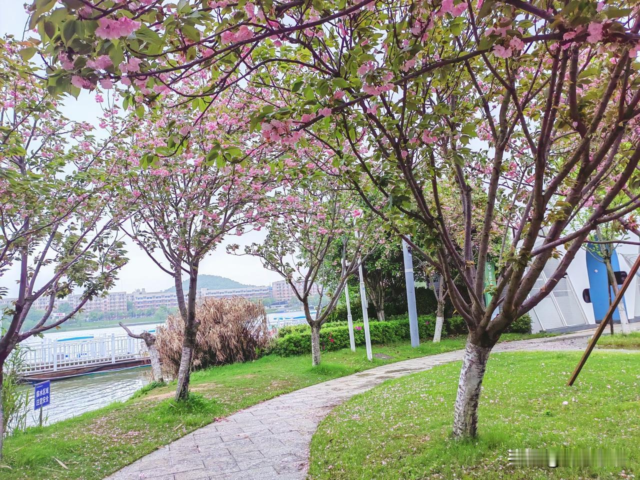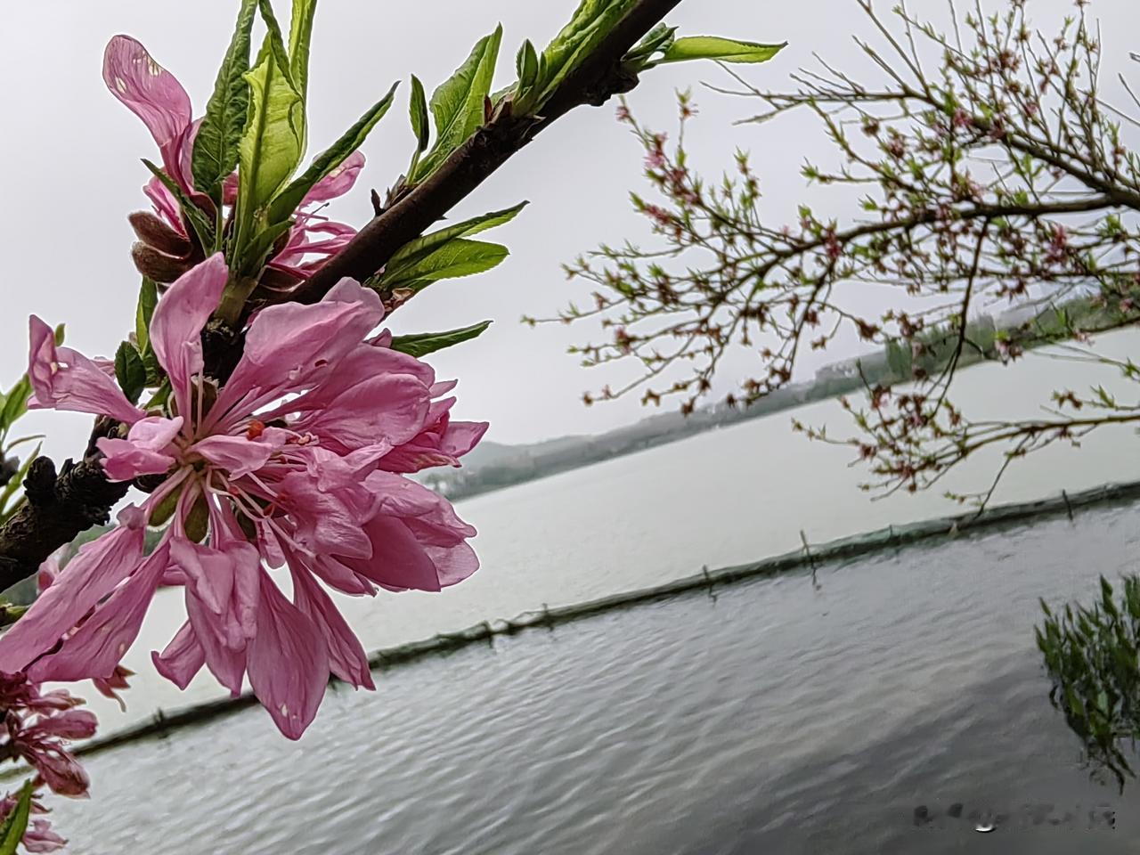 长沙一连下了十来天雨,今天终于停下了脚步,我来到后湖玩,堤岸的柳枝乘着东风荡着秋千;湖水波光粼粼,层层波浪惊涛拍岸,唱起了“哗啦啦……”的歌曲;樱花迷恋着大好的春光,暮春时节仍迟迟不肯谢去,粉色樱花如天边云霞,醉了人间,醉了春光,也醉了我这个看花的人。
