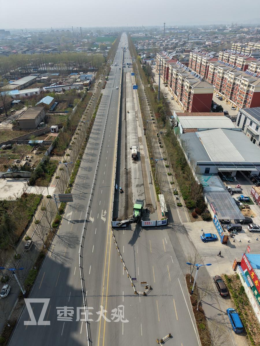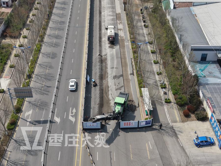 【实拍枣庄中兴大道封路施工进展】在现场可以看到,部分路面已经封闭上了。这次施工是