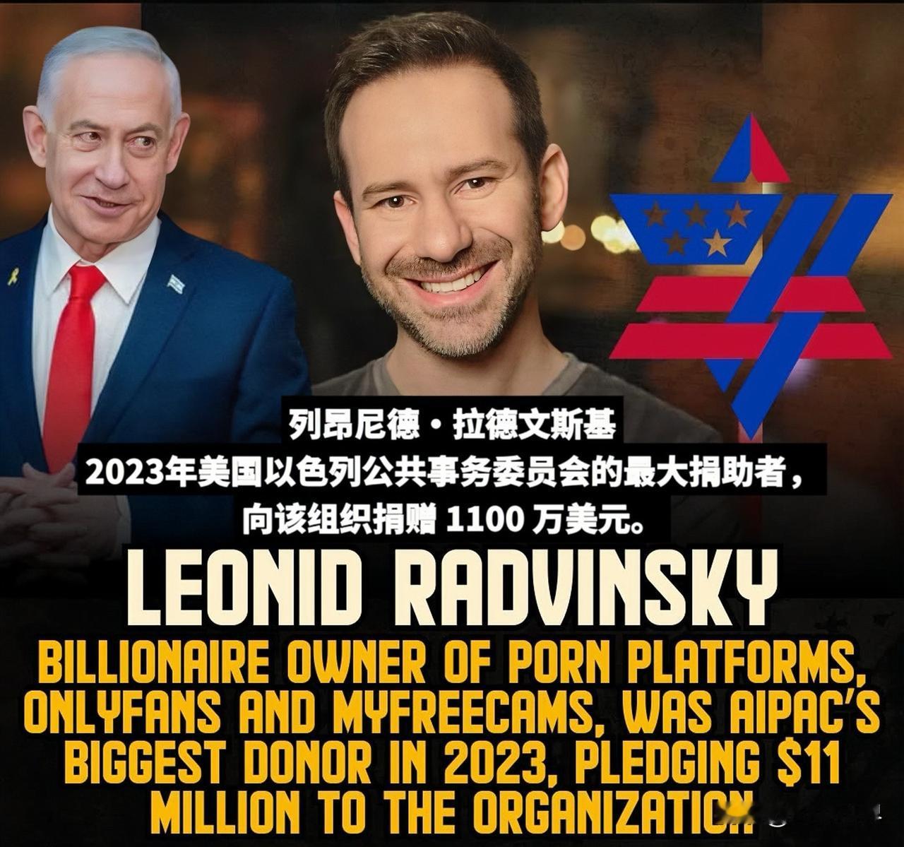 这个人对人类社会造成的损害无法估量,他诱使整整一代女性在网上进行性化,毁了她们的人生。一旦你进入OnlyFans,就很难退出,因为你卖出去的东西,不是一次性的劳动,而是可以被复制、保存、再传播的你。另外,他还是美国以色列公共事务委员会和以色列国防军的主要捐助者。