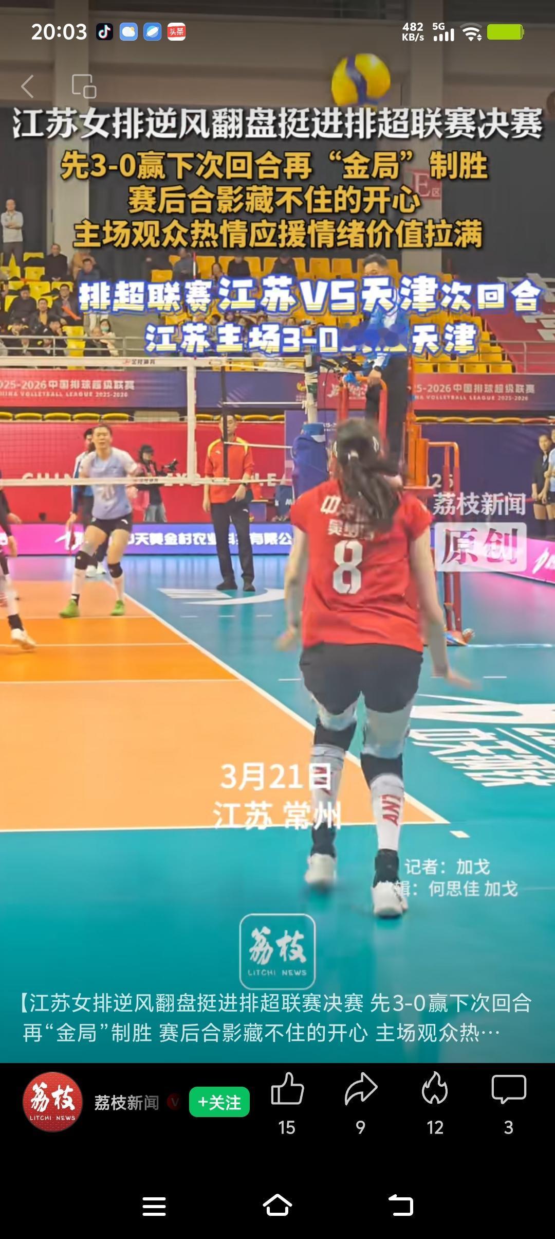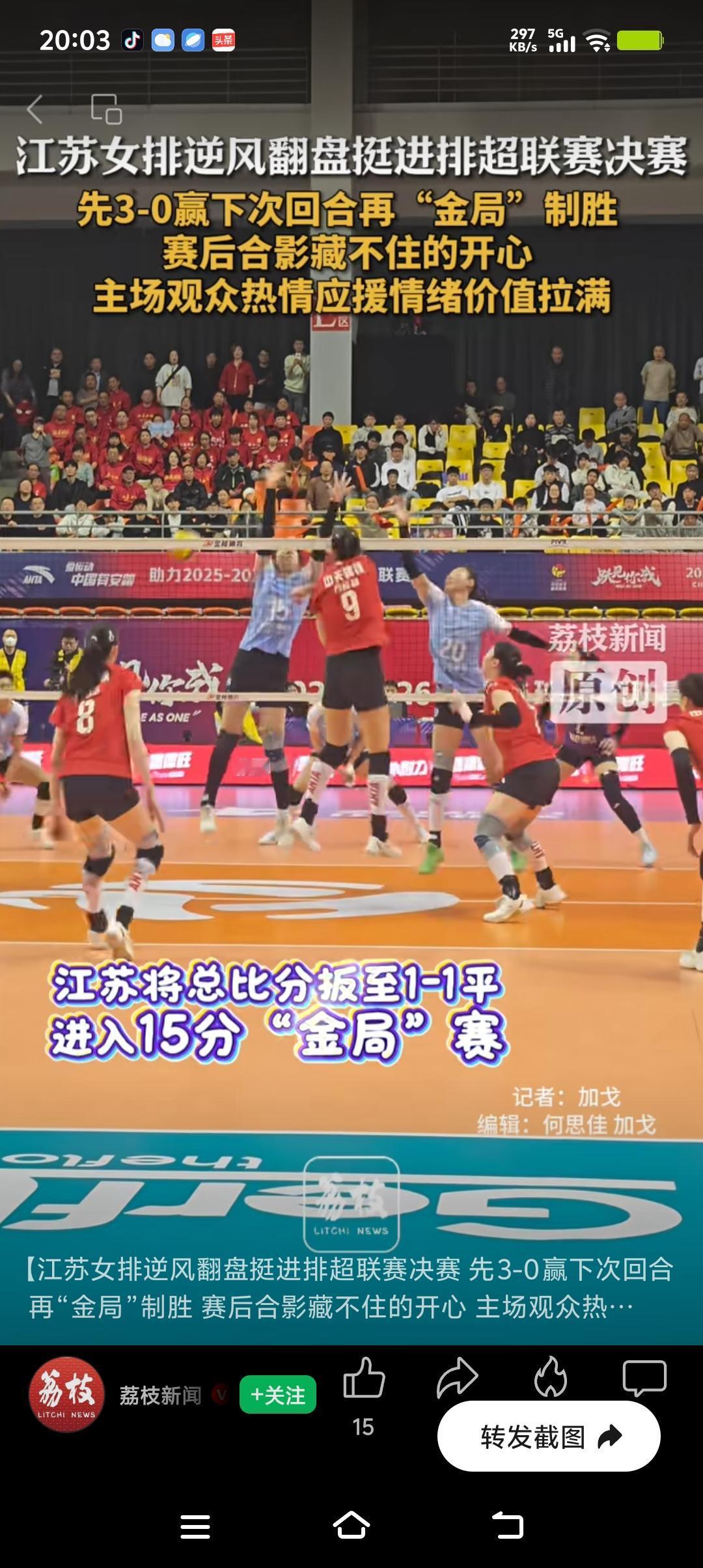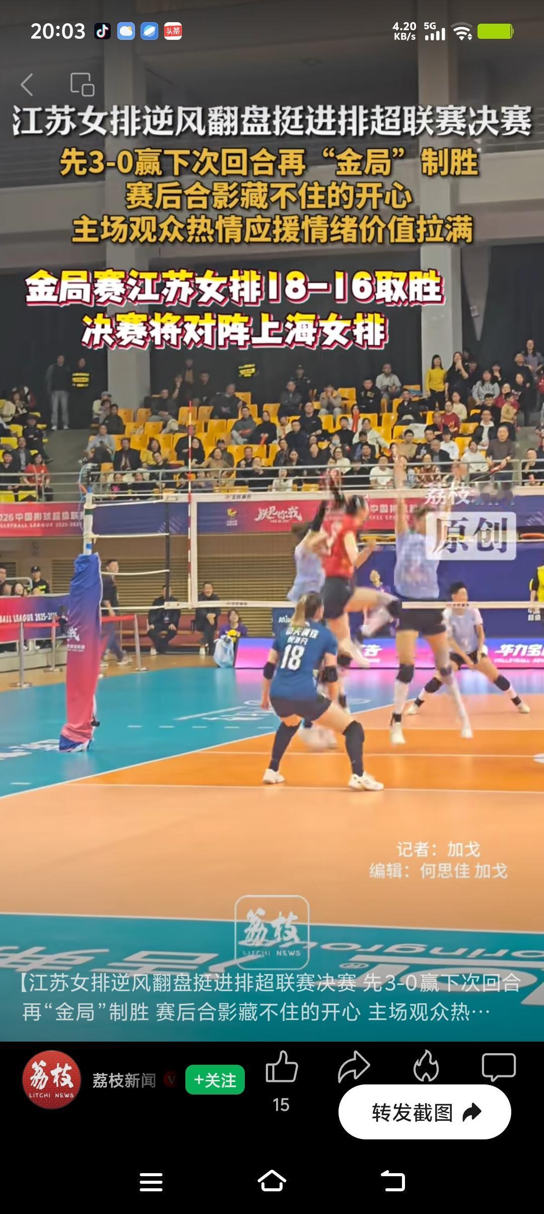 江苏女排逆袭晋级决赛,观众超嗨,激动人心的胜利时刻!