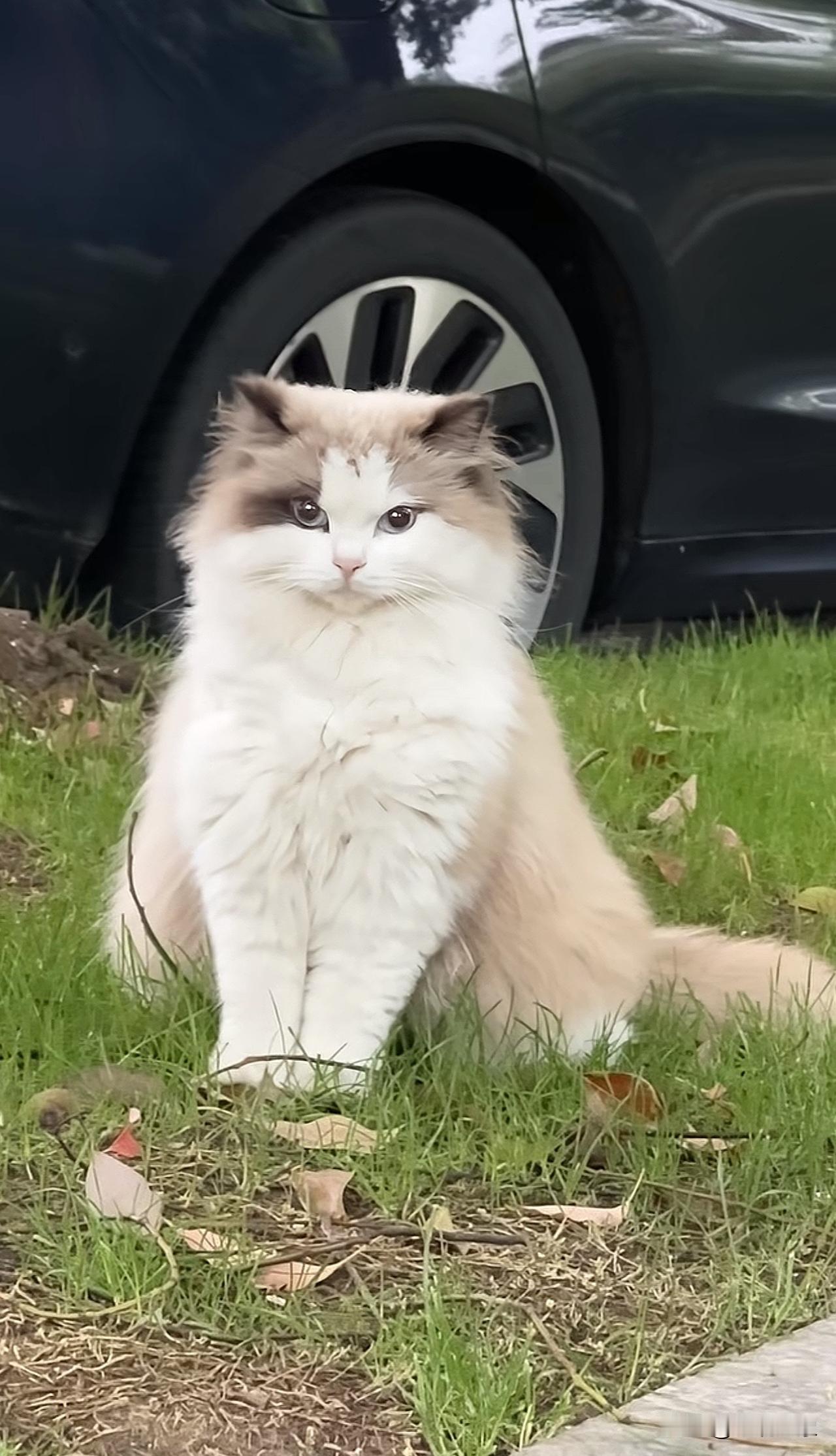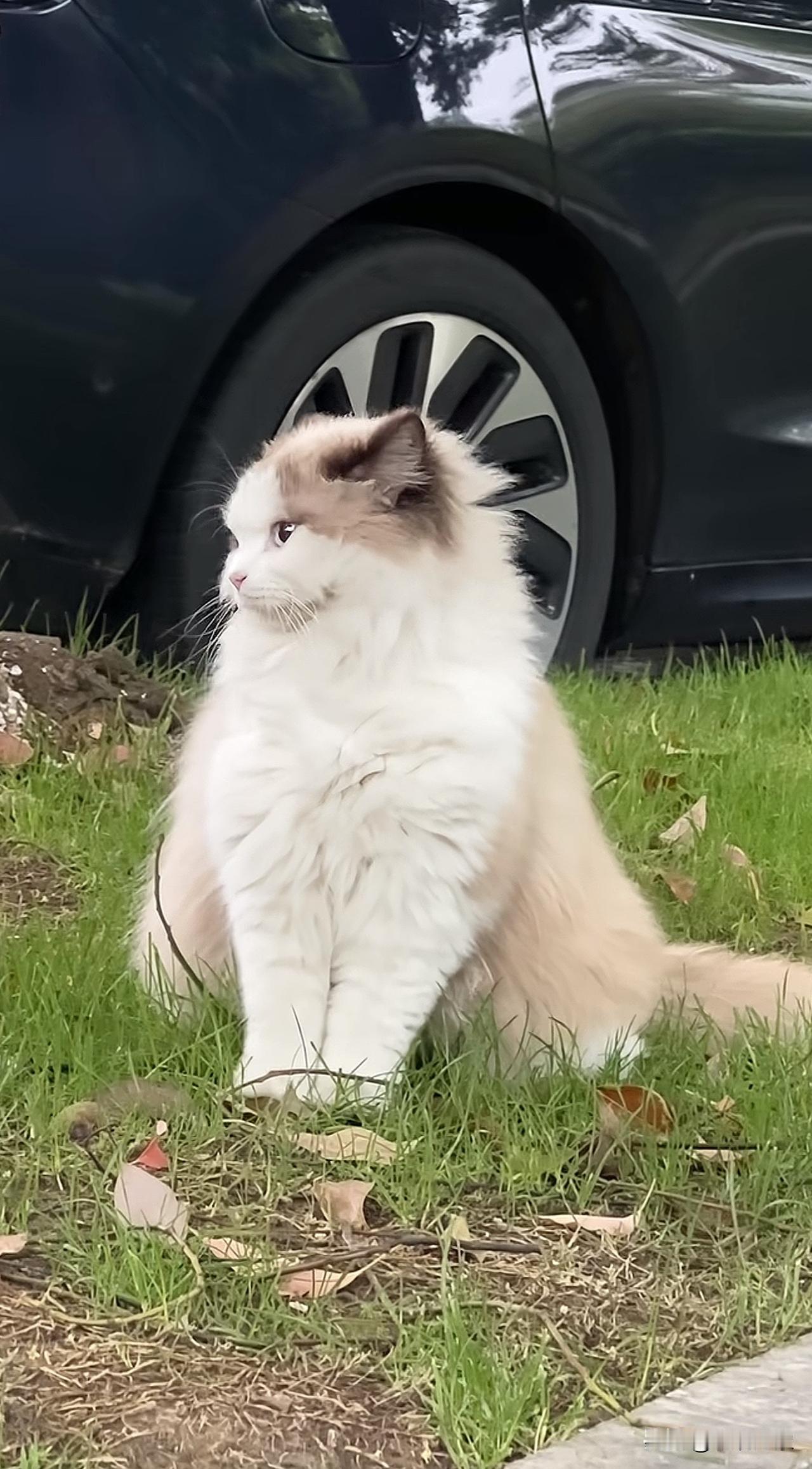 绿化带上的一只猫咪!气质优雅,举止端庄,一看就是哪位大户人家小姐
