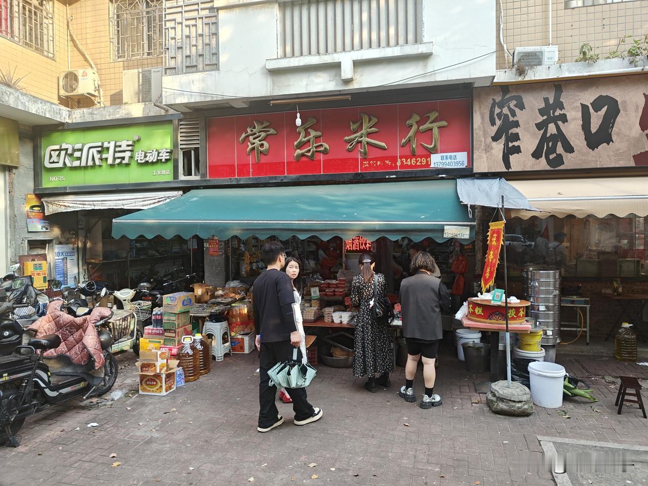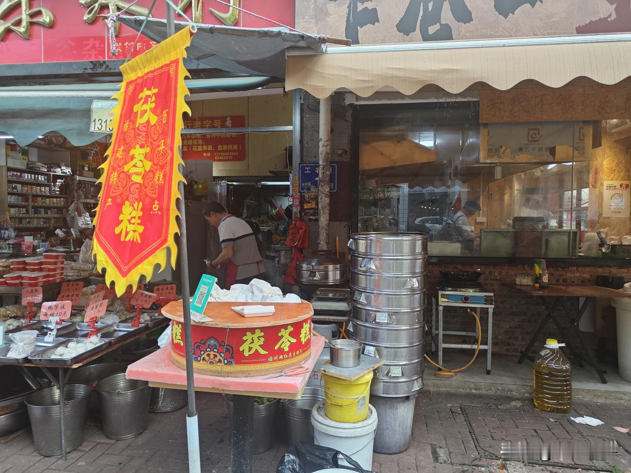这家原本卖米卖油的小店,门口摆着两大蒸笼,热气直冒,吸引了不少顾客。