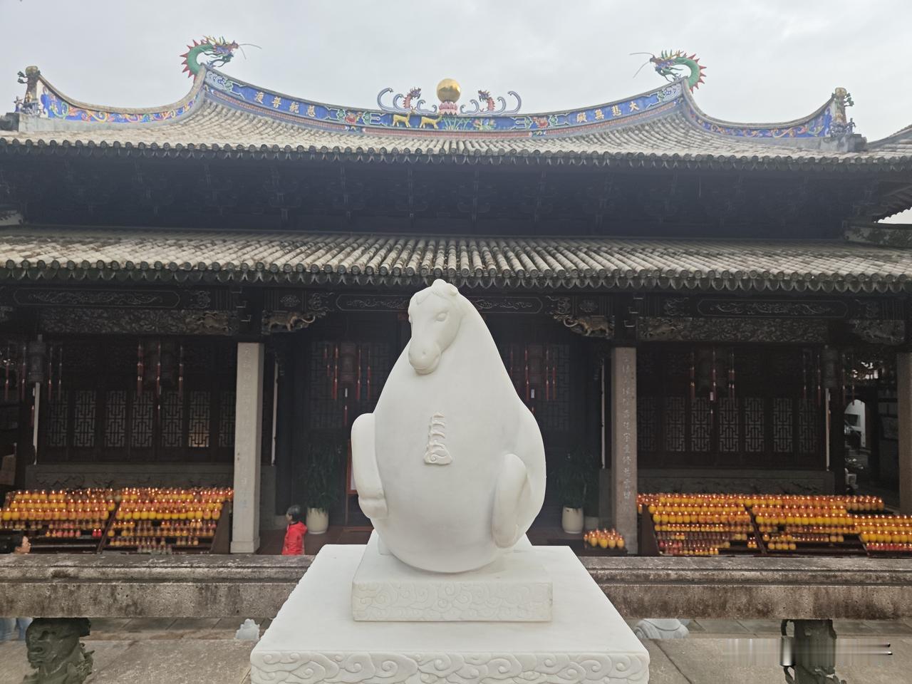 2026马年,寺内添了一处新景——一尊汉白玉白马雕塑静静伫立。玉石温润莹洁,马儿身形丰满肥硕、气韵沉稳,神态安详自若,与古寺的宁静、白塔的庄严相得益彰。