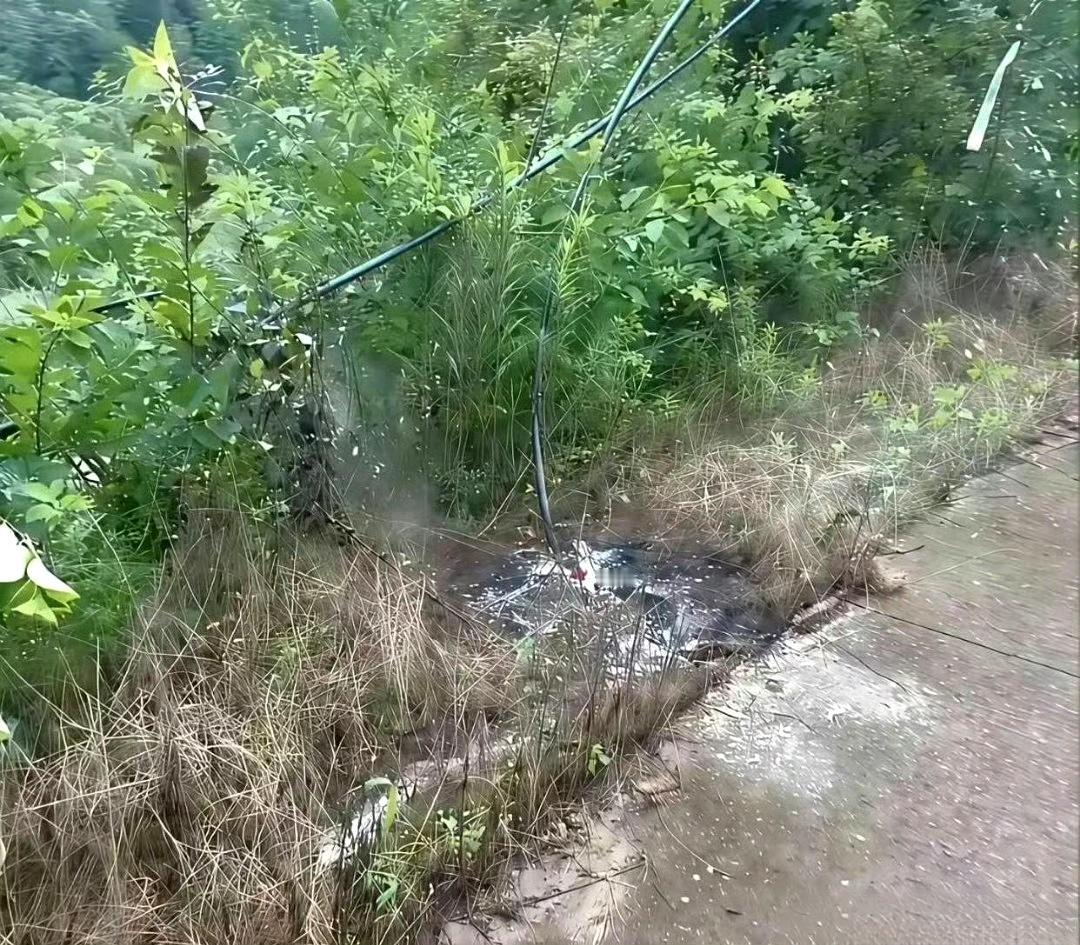 这就是高压电线的威力,还好是落在地上。