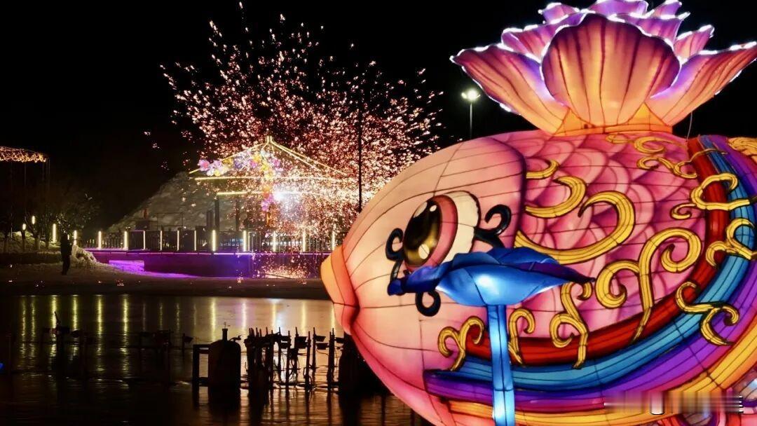 活动内容:近20组大型灯组亮相,神话瑞兽、国色山河映着山海;夜色里流光溢彩,随手拍都是大片,打铁花、舞狮纳福、喷火变脸等节目精彩上演,神仙 NPC 陪你玩游戏,猜灯谜、鸿运滚滚超有趣。