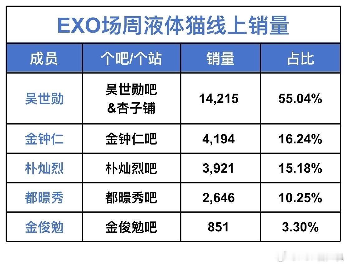 EXO近期销量,谁是top?