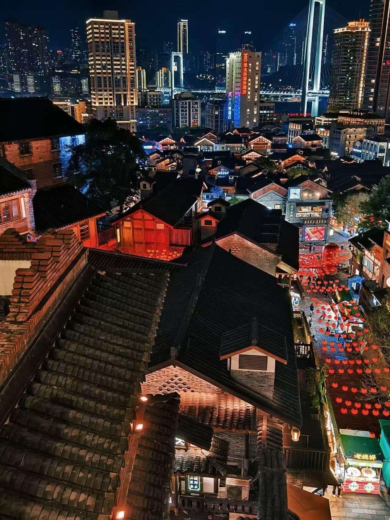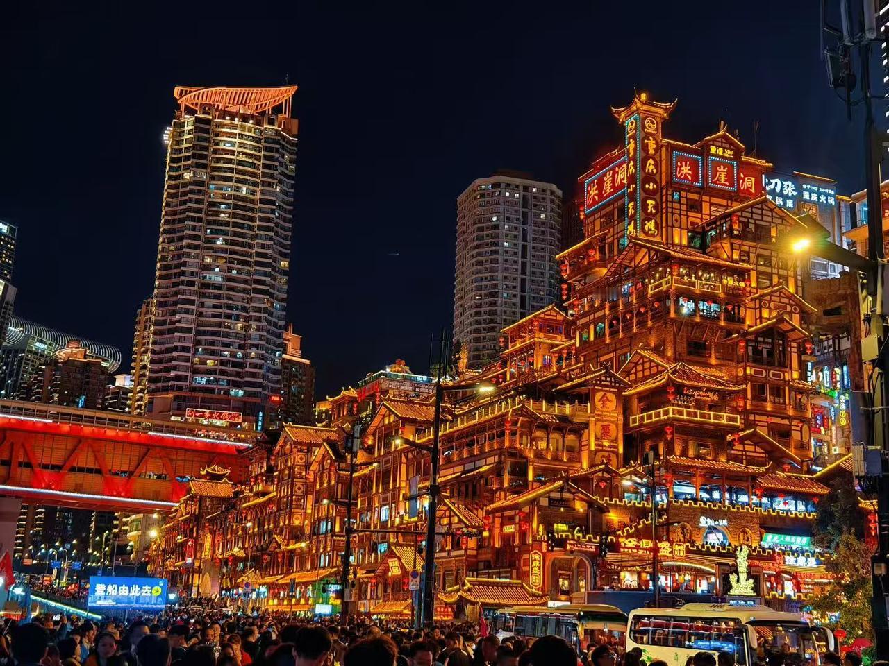 小什字站→1楼入口进→逐层逛吊脚楼→打卡复古街区→千厮门大桥拍夜景→大剧院江滩拍全景