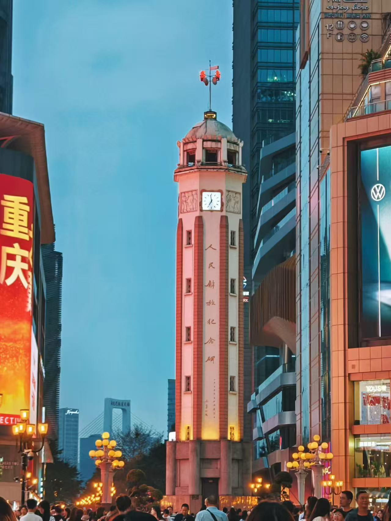 ✅洪崖洞1楼对面马路:仰拍吊脚楼,建筑与人像同框,出片率100%