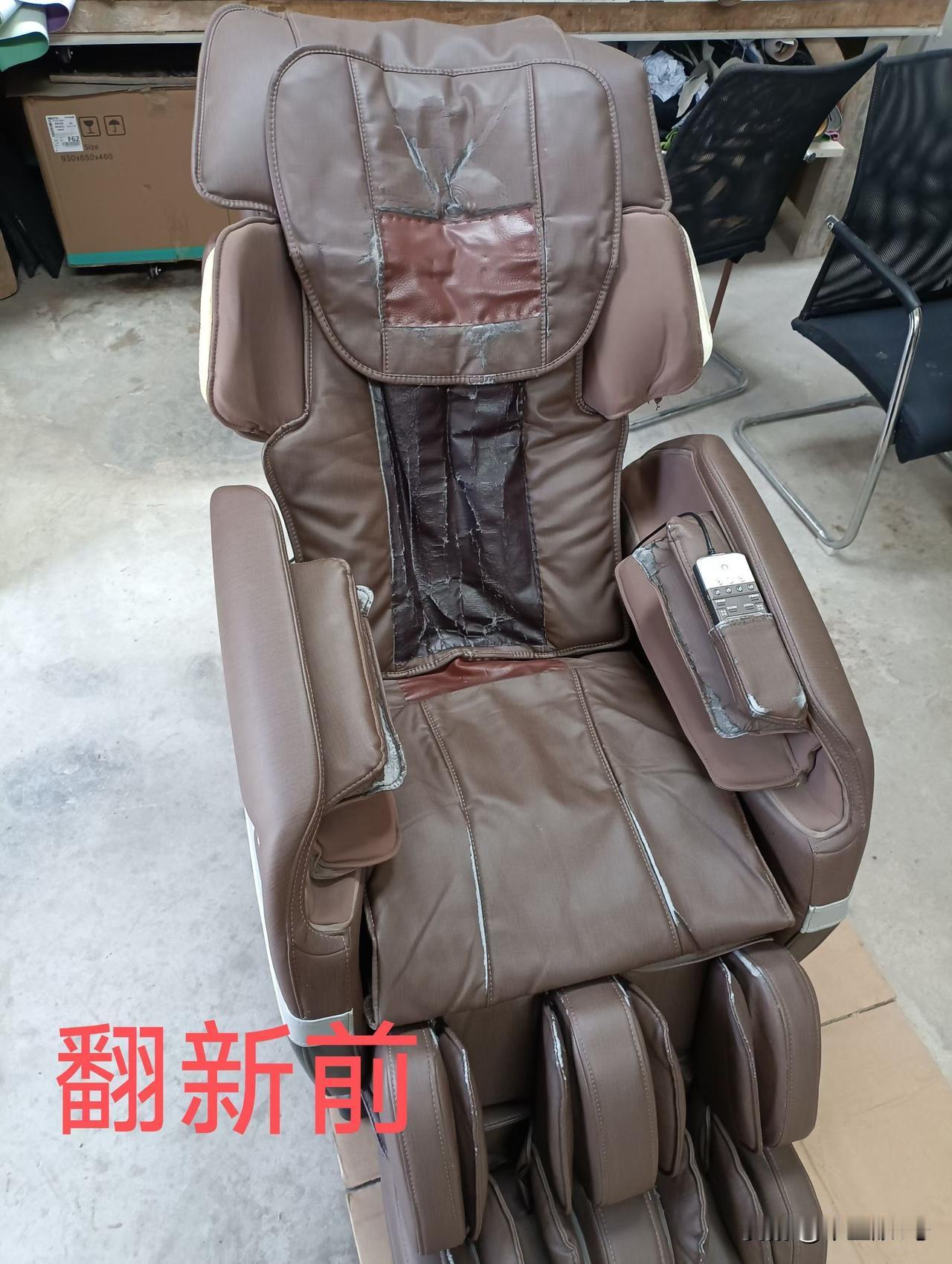 按摩椅换上了漂亮新衣服。 多年前万把元买的按摩椅,表面的皮质变得粗糙破损,但内部