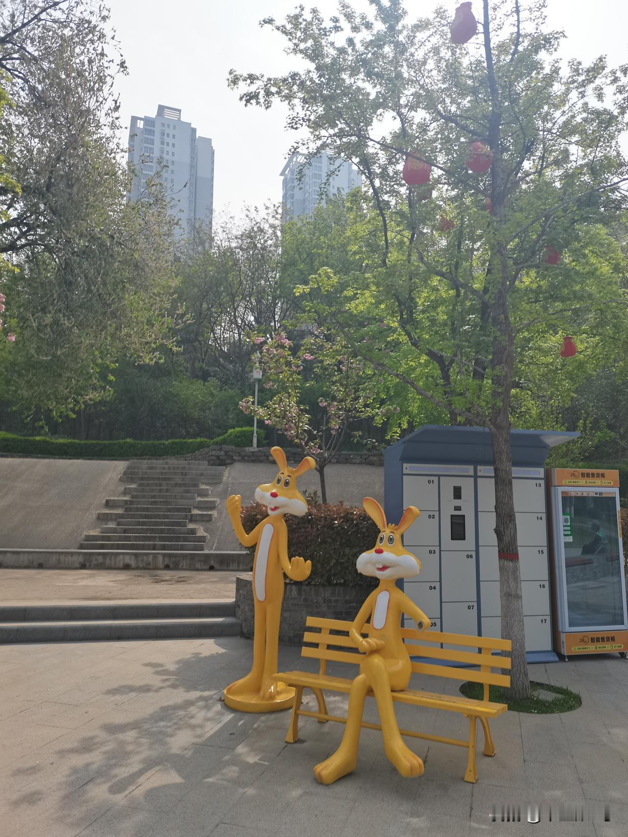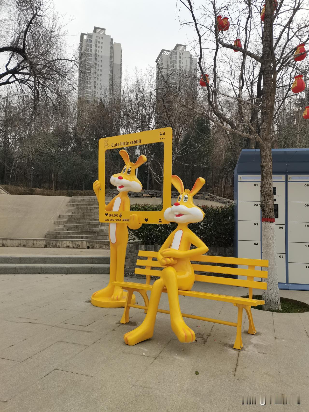 清河湿地公园步道边,春节前新上一组卡通兔子座椅,黄色的,很新奇很漂亮。过往的人都要去坐一坐,拍张图片,留下一个笑脸。