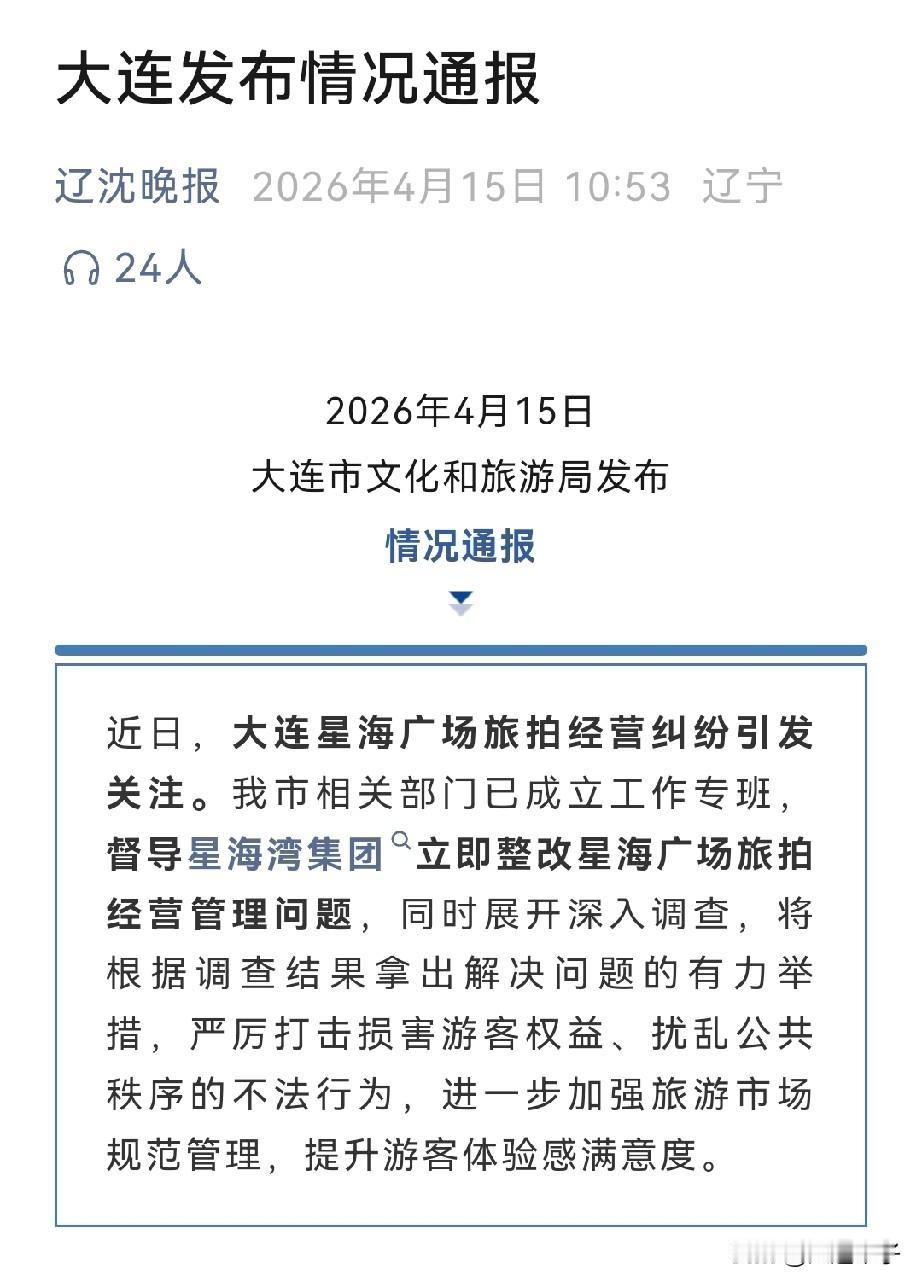 大连文化和旅游局通报来了! 就星海广场事件,发布情况通报,调查后解决这个问题(