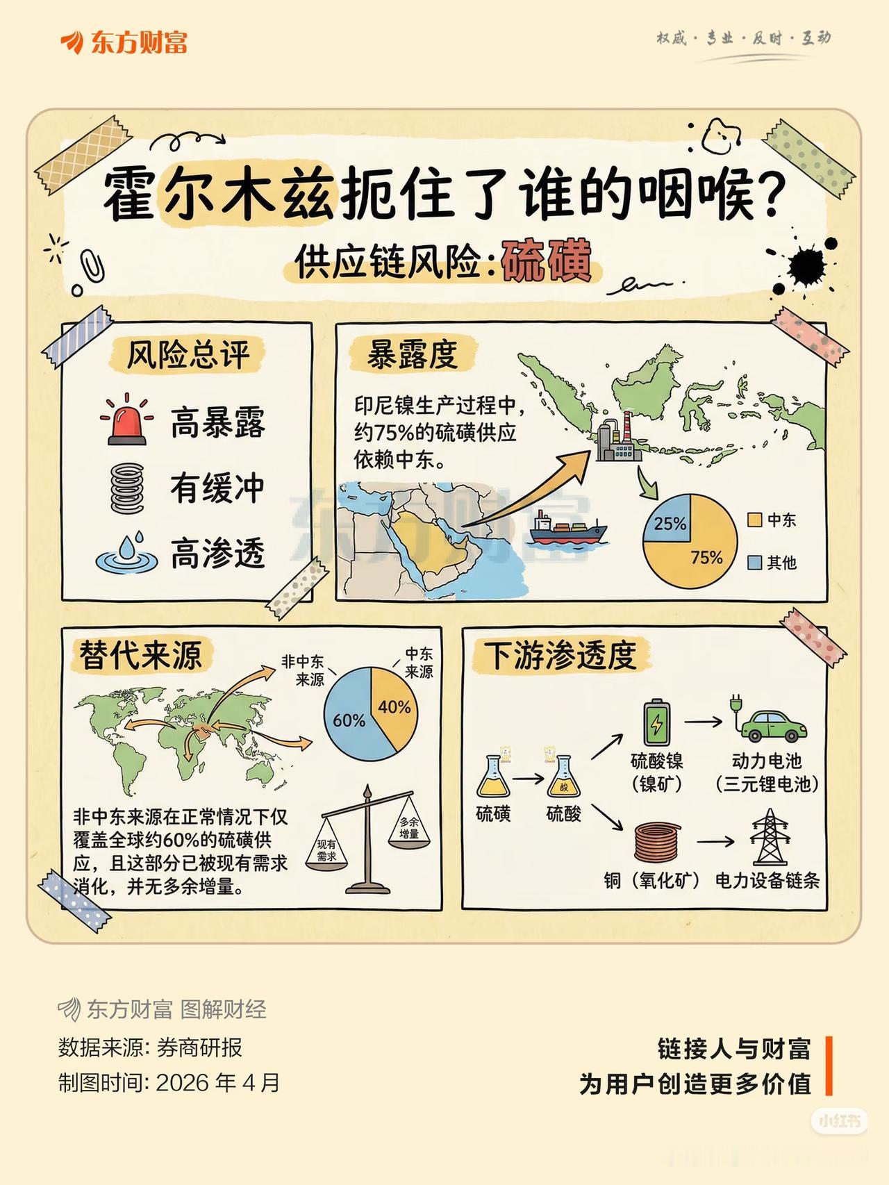 硫磺→硫酸→硫酸镍→三元锂电池,这是动力电池的关键链条。一旦硫磺断供,电池厂就会停产,新能源车、储能都要受影响。