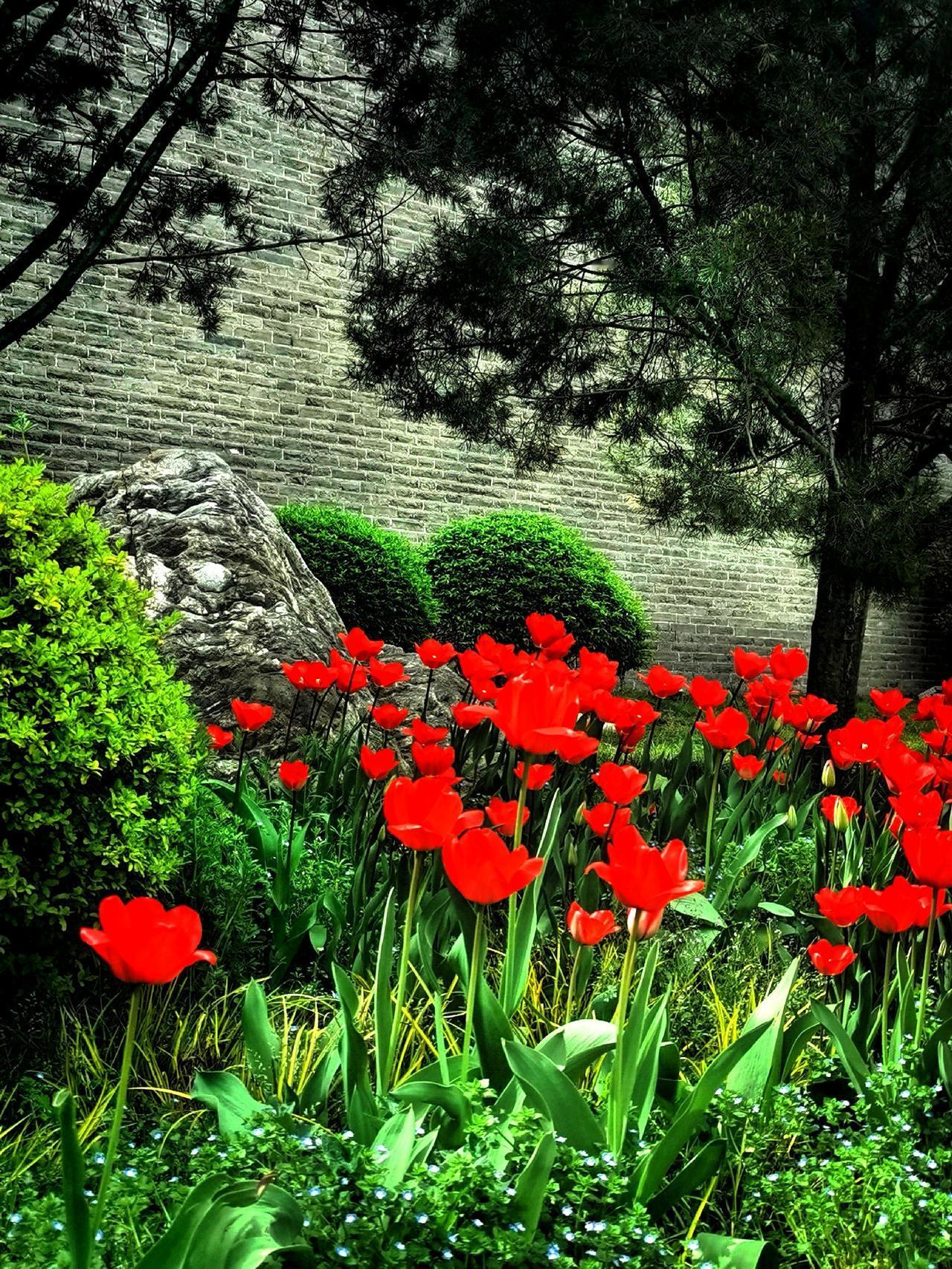 红色郁金香花瓣饱满艳丽,红得热烈又不失温柔,像被春姑娘精心晕染过一般,明媚可爱,格外惹人注目。微风轻拂,花朵轻轻摇曳,暗香浮动,令人赏心悦目,心旷神怡,忍不住驻足流连,往返再三,依依不舍!