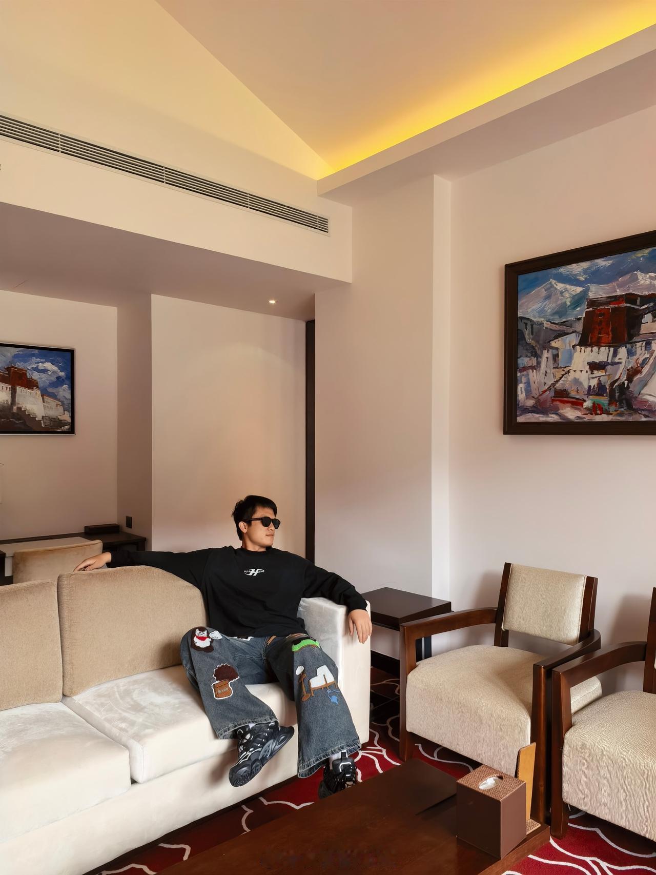 五年前初见便心动,故地重游直接锁了江景套房。藏式红金调+全景落地窗,躺卧沙发就能把喜马拉雅雪山、雅鲁藏布江尽收眼底,供氧超足,高反无忧。