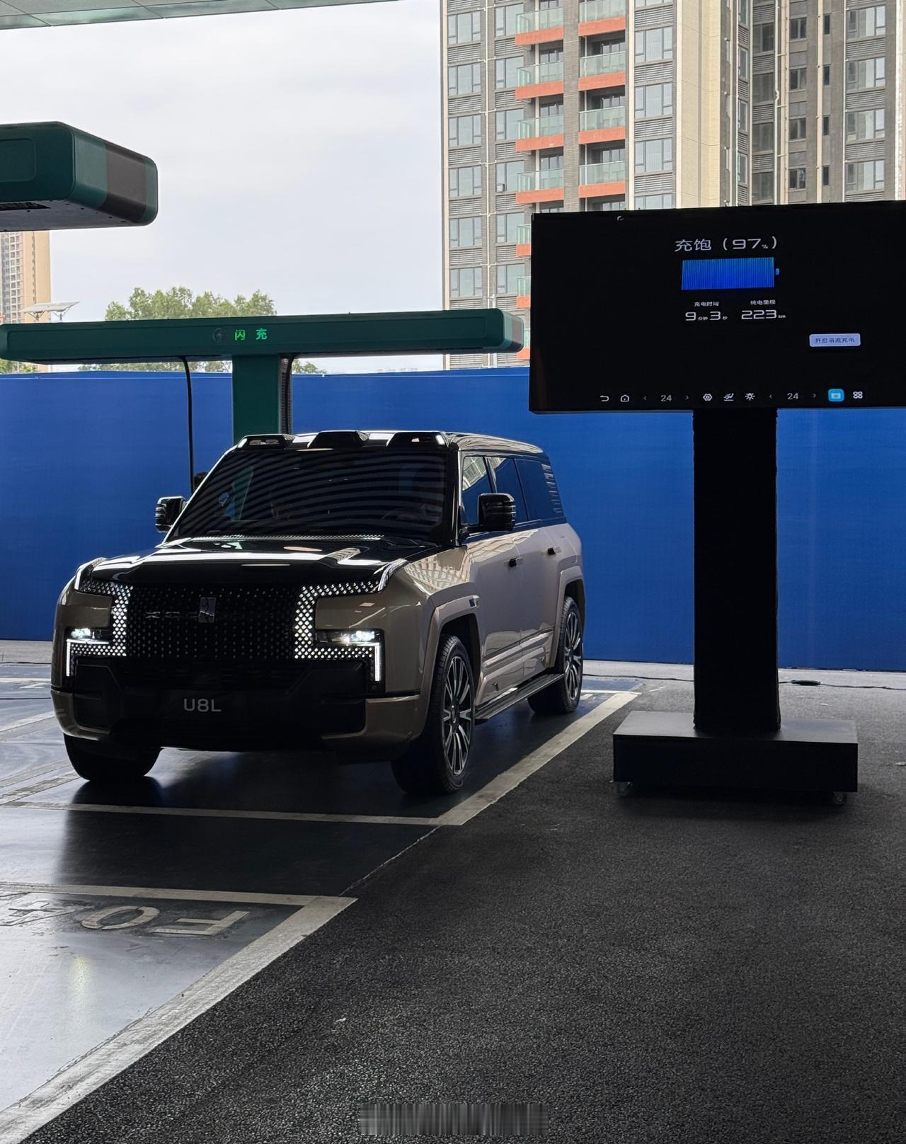 上午在深圳一个已经建成的闪充战现场感受了下闪充速度,方程豹钛3,从10%充到97%同时8分46秒,仰望U8L用时9分03秒,这速度真跟加油的速度不差了。