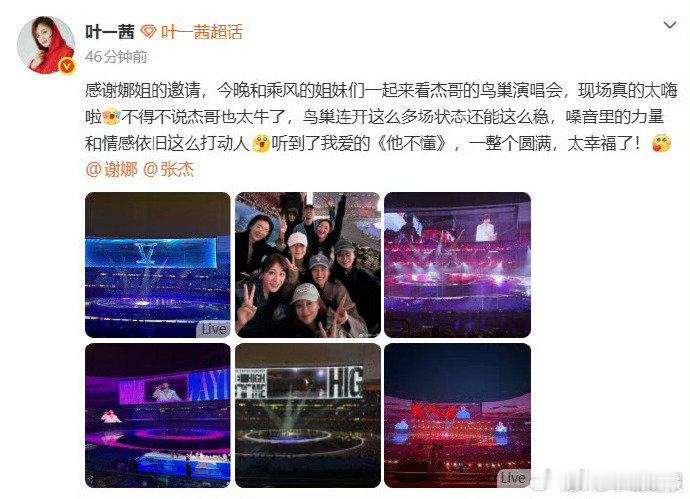叶一茜带森碟看张杰演唱会 星光满满的演唱会现场,叶一茜陪森碟一起听歌,氛围感直接