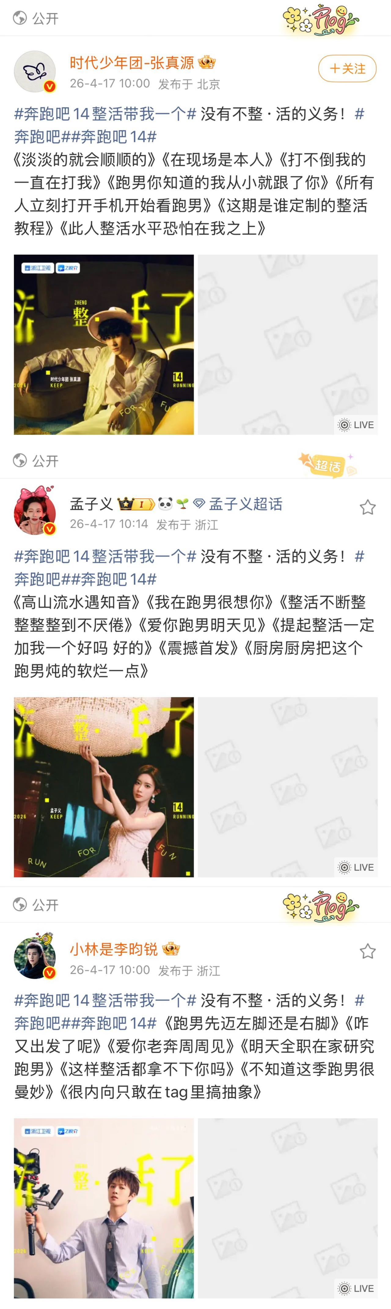 跑男团发图集体被夹 点开跑男团微博一看,全是被夹的图。心疼还没一秒,发现上当了。跑男你是会整活的。奔跑吧