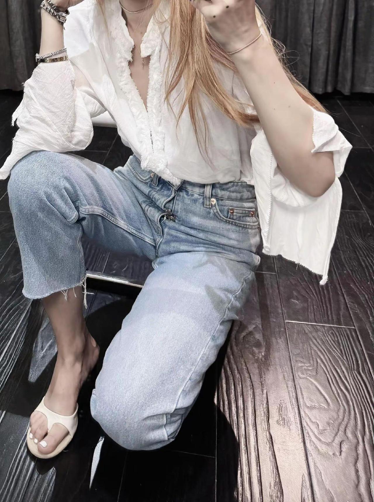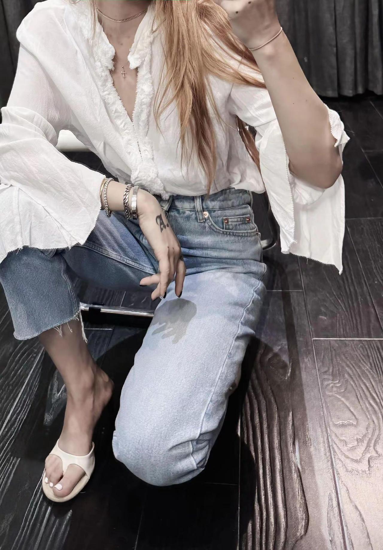 王濛的衬衫竟然不是一件拼接衬衫,而是用两件衬衫合在一起的,淡粉配淡蓝