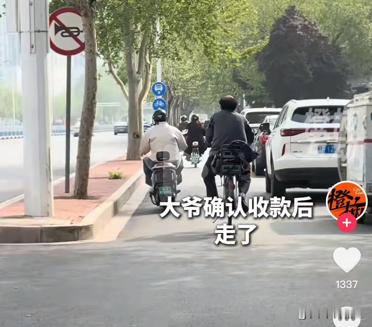 河北石家庄帮外卖小哥垫付赔偿款的暖心交警找到了,另一当事人,受伤大爷在确认收款后骑上车就走了。