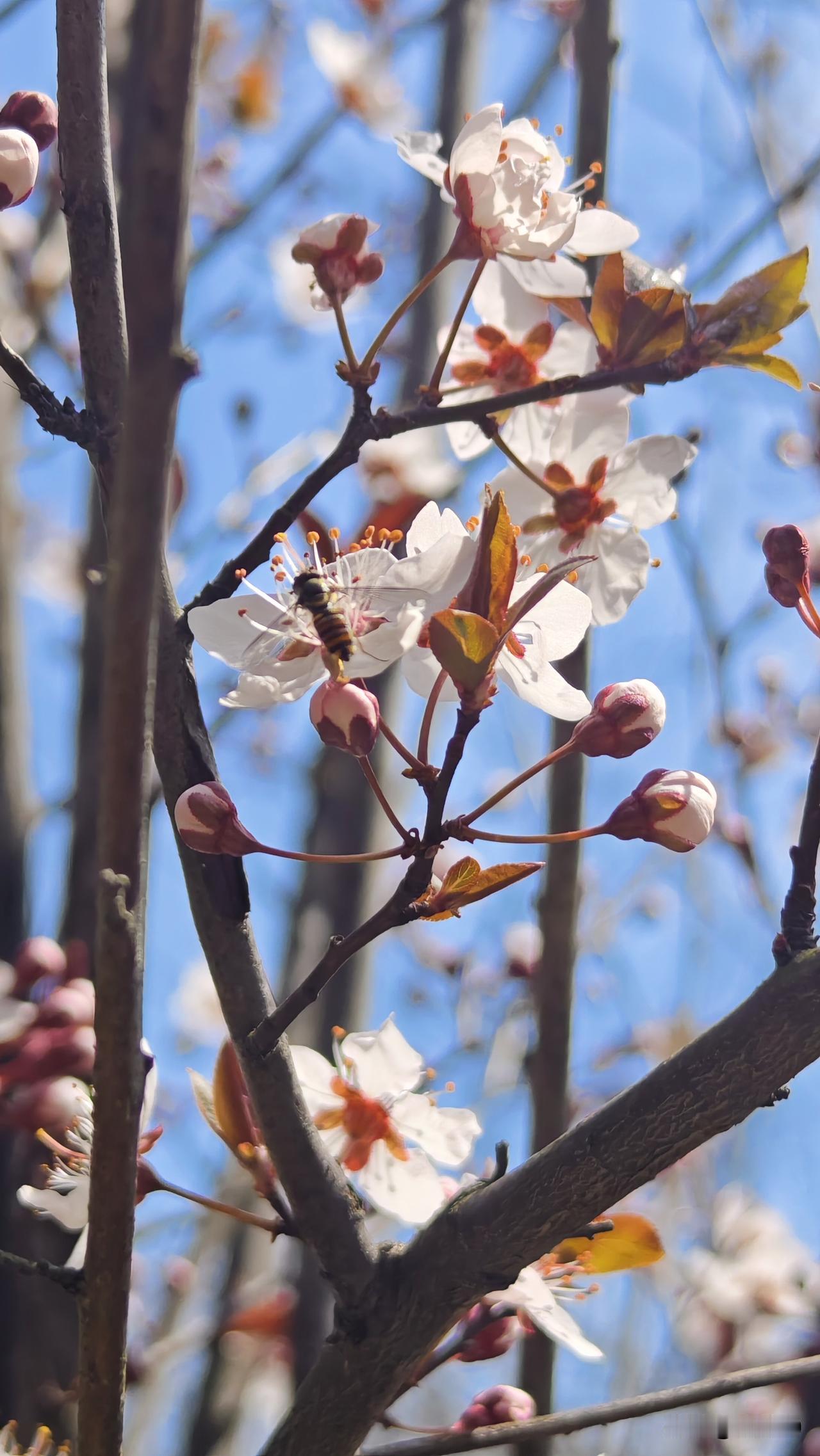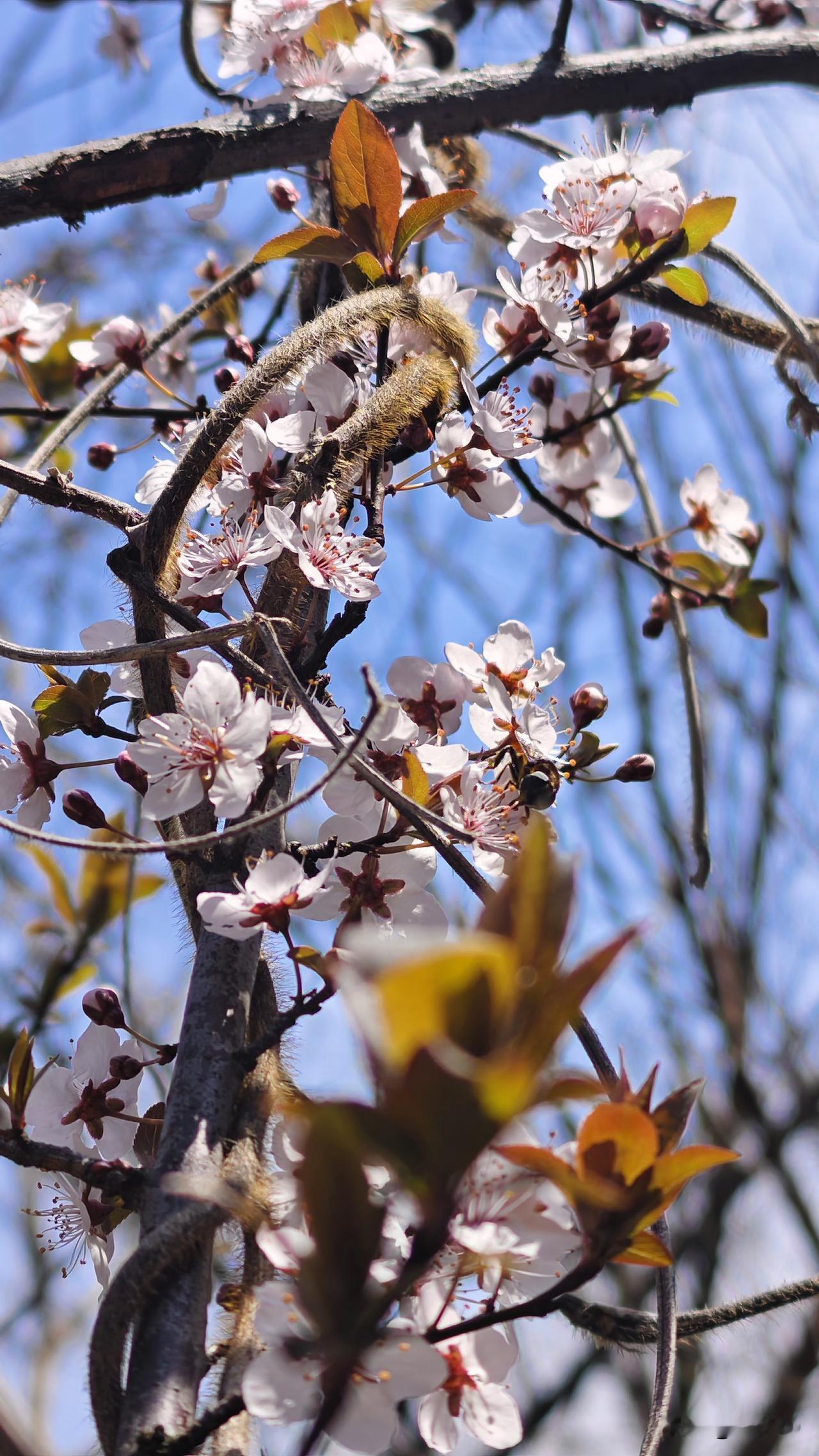登山路上花争艳,🐝忙,蚂蚱也来争春,嫩叶渐渐舒展