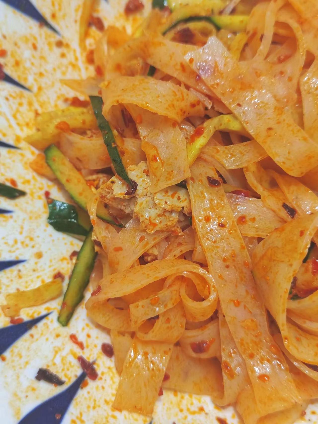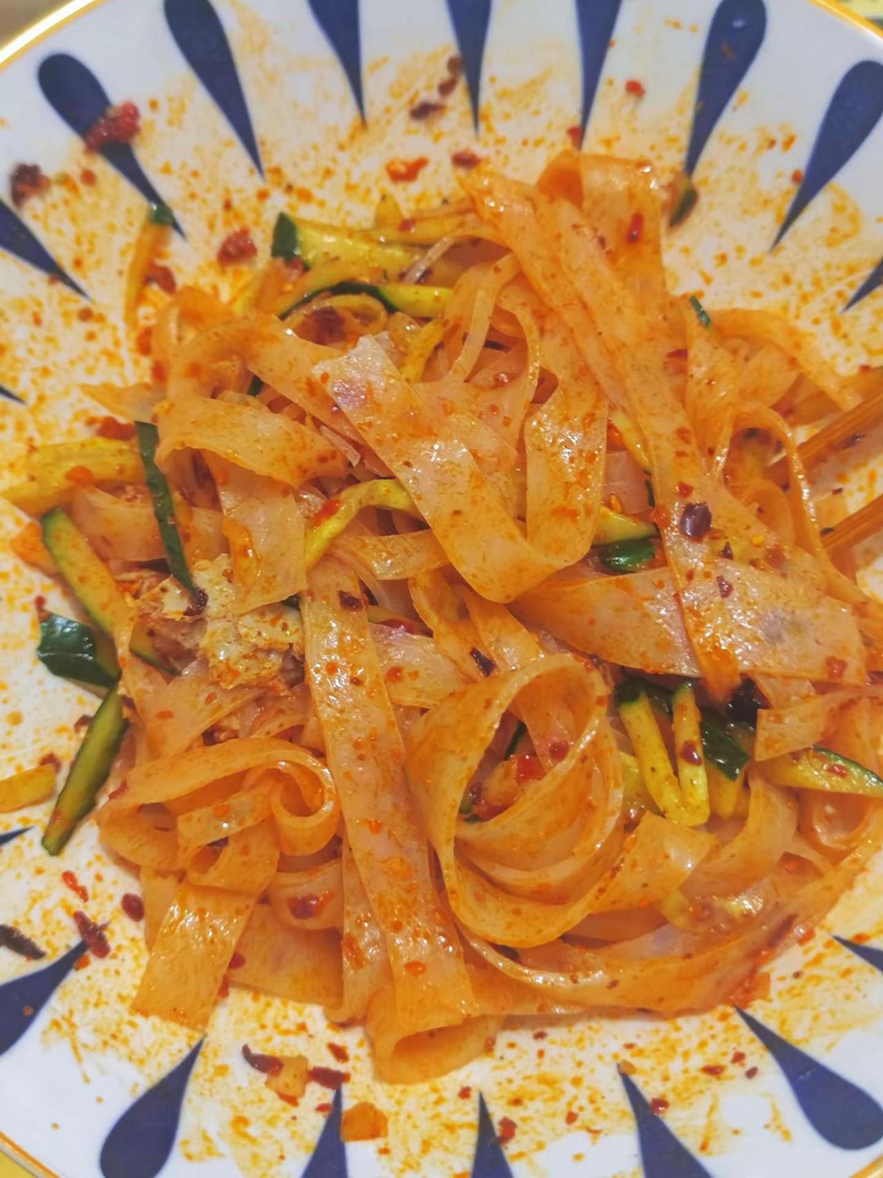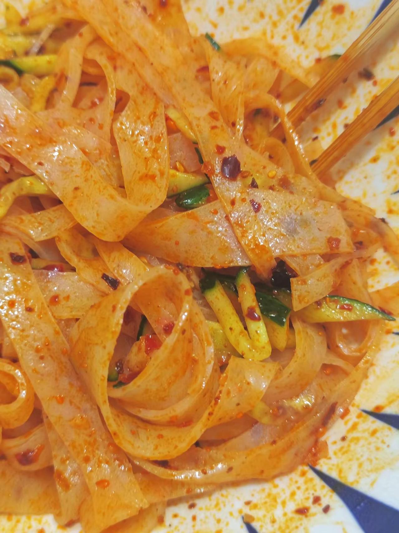 隔几天就想吃,上瘾了!来西安逛一定要吃擀面皮真香啊我在晚市买了一张擀面皮花了一块