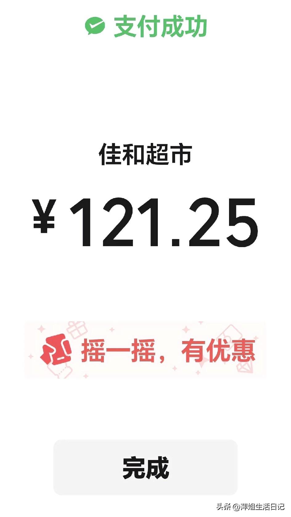 大大小小11样东西,自助扫码结账花了121.25元,这是我回到家买菜消费最多的一次。