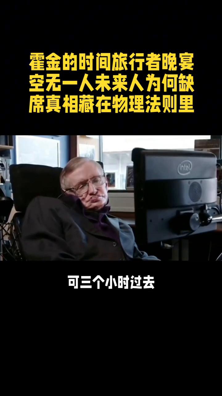 2009年6月28日,物理学家霍金在剑桥大学举办了一场特别的晚宴,他精心布置餐桌,竖起"欢迎时间旅行者"的标牌,静静等待来自未来的客人。可三个小时过去,没有任何人出现,这场轰动科学界的邀约最终以空无一人收场。