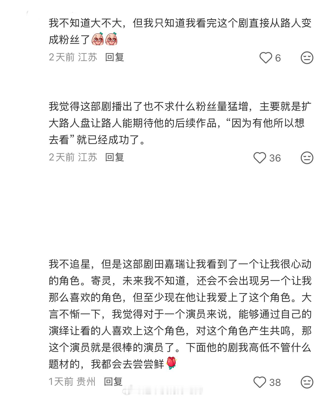 能在一部剧里被大家看到且演技得到夸奖对演员来说真的很幸运《月鳞绮纪》播完知道有一个叫田嘉瑞的演员他演技是真的好因为有他会愿意想看他下一部作品我想这就足够了这就是加成田嘉瑞田嘉瑞