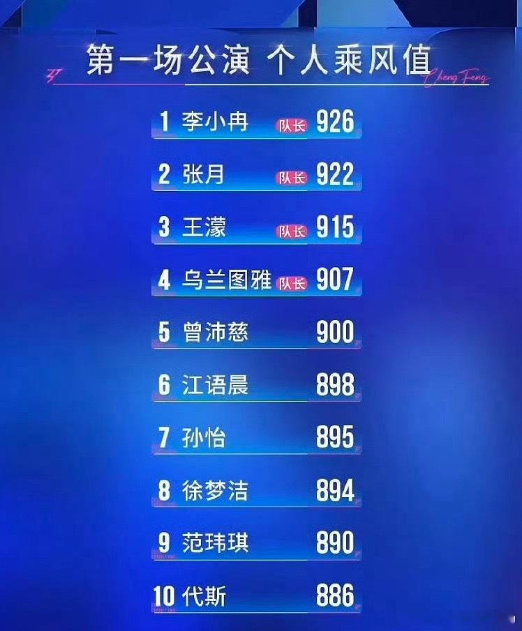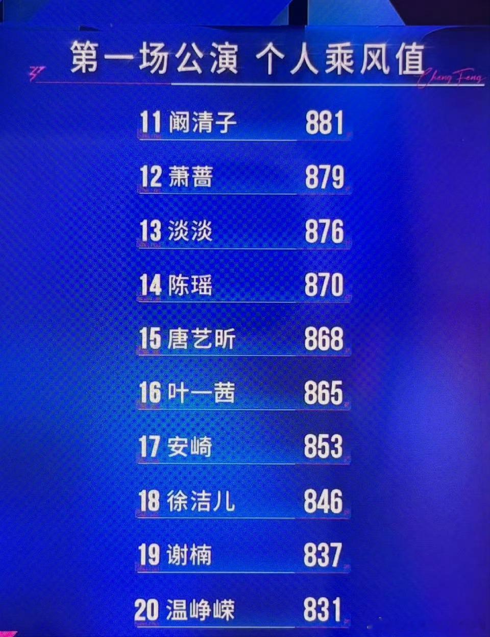 乘风二公真人秀李小冉一公第一名浪姐一公乘风值排名