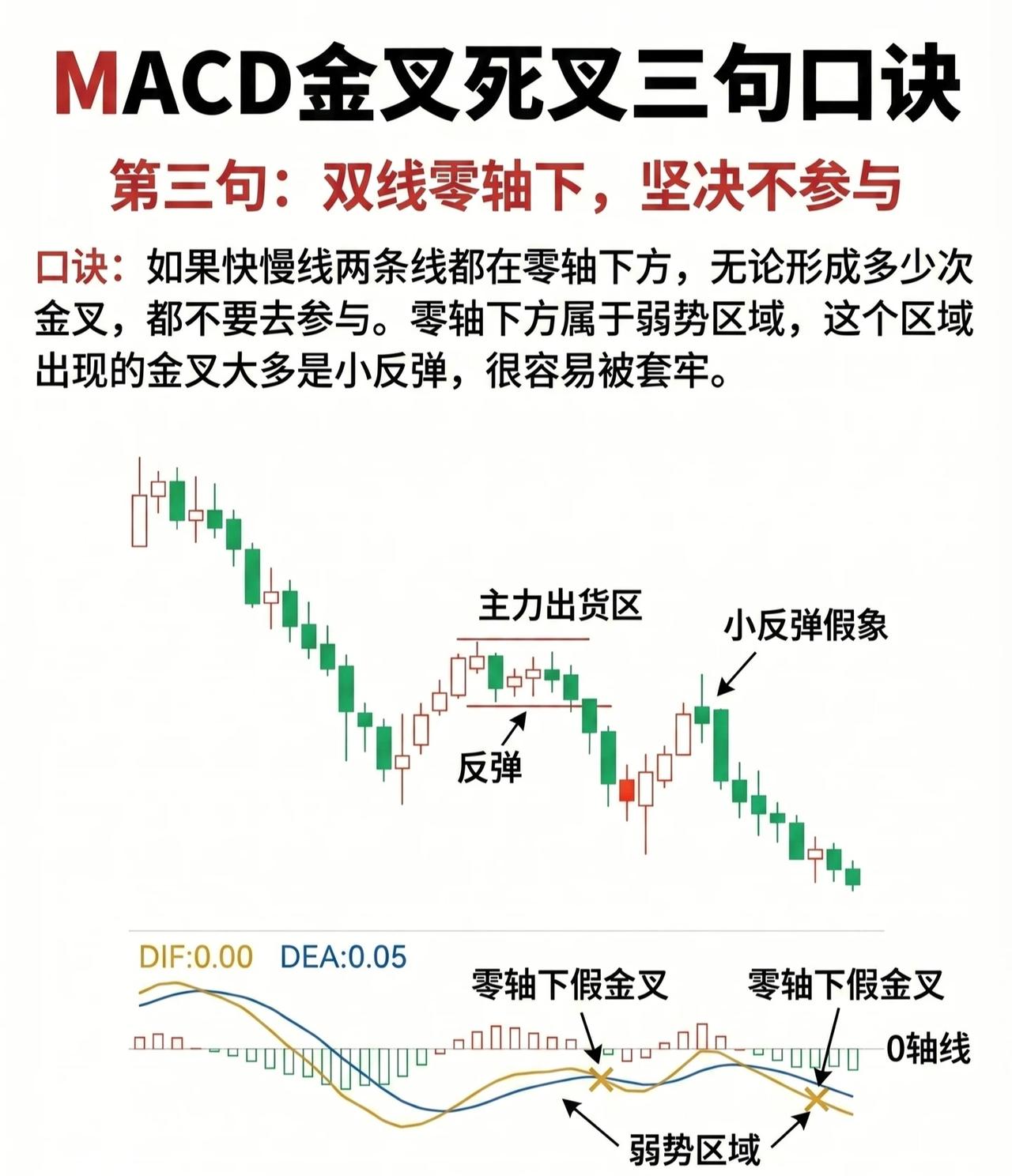 - 关键提示:“零轴下假金叉”强调其不可参与性,避免盲目抄底
