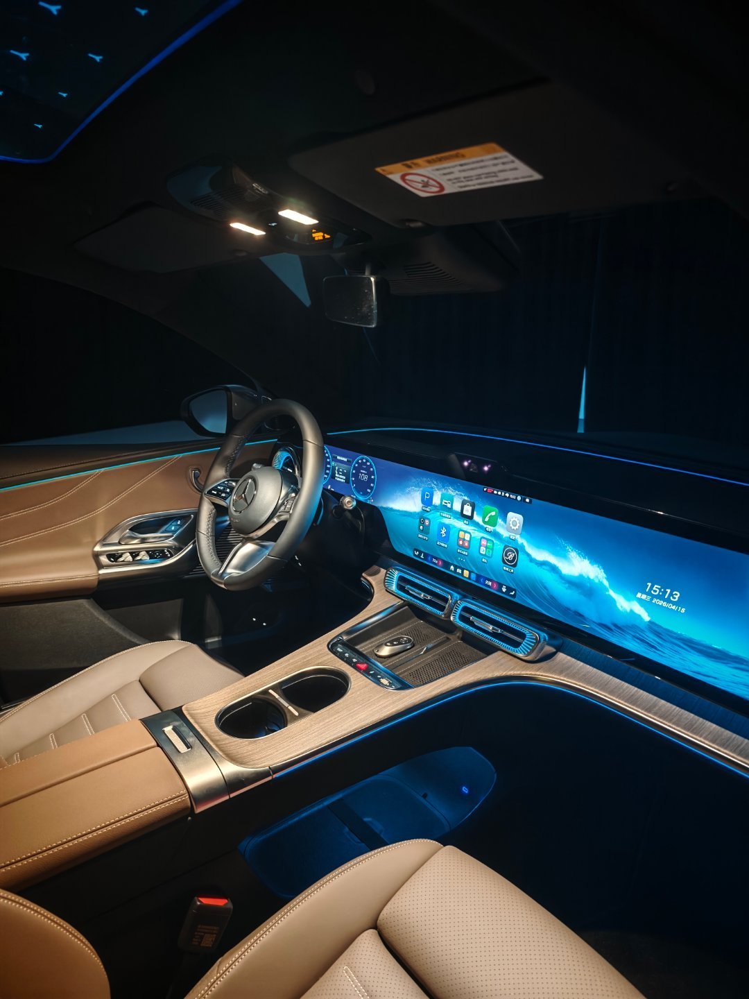 感受一下奔驰GLC 纯电版的内饰,车顶有三叉星辉,超大连屏,奔驰在内饰方面真是走在前端。