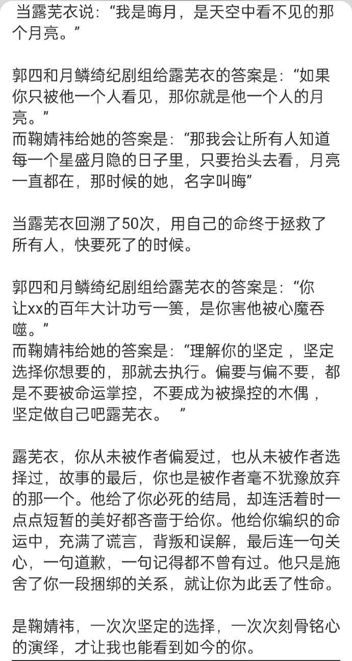 郭敬明和鞠婧祎对露芜衣的理解郭敬明和鞠婧祎对露芜衣的不同理解 但是最后角色的呈现
