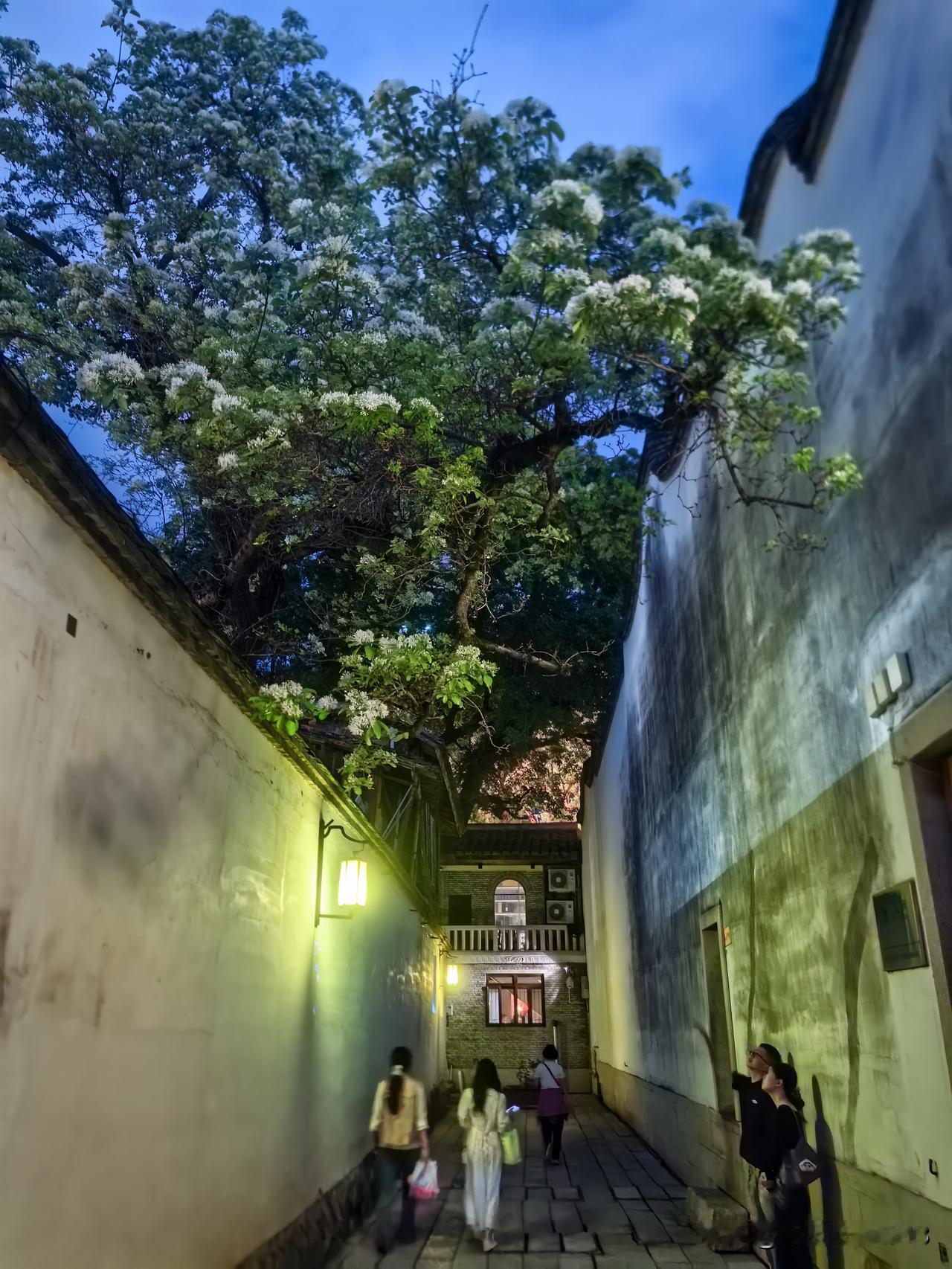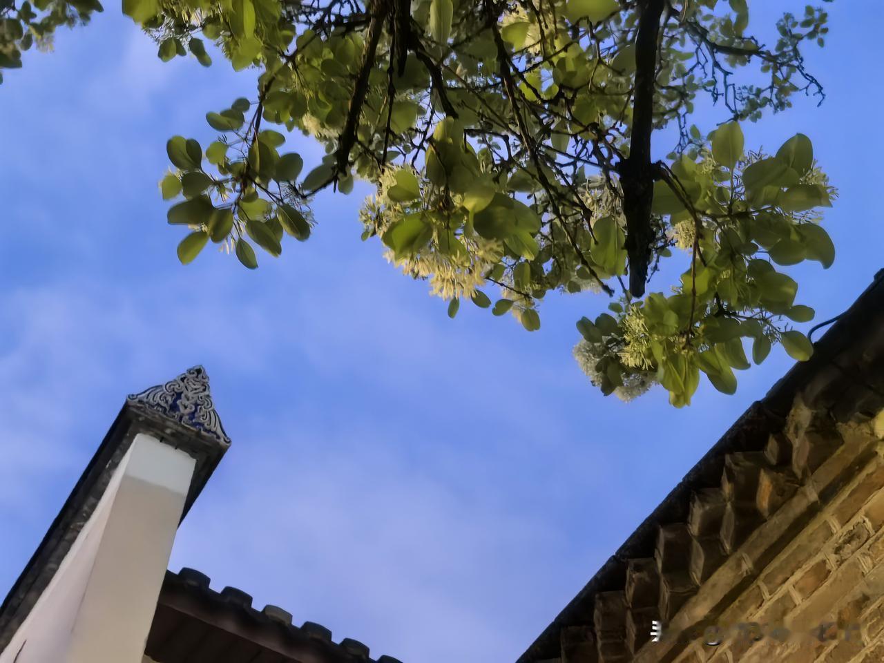 夜幕降临,终于寻得机会,前来一睹三坊七巷衣锦坊的百年流苏王。此时天色已暗,好在天公作美,以湛蓝色的天幕为背景,百年流苏王竟能被拍摄得如此清晰。