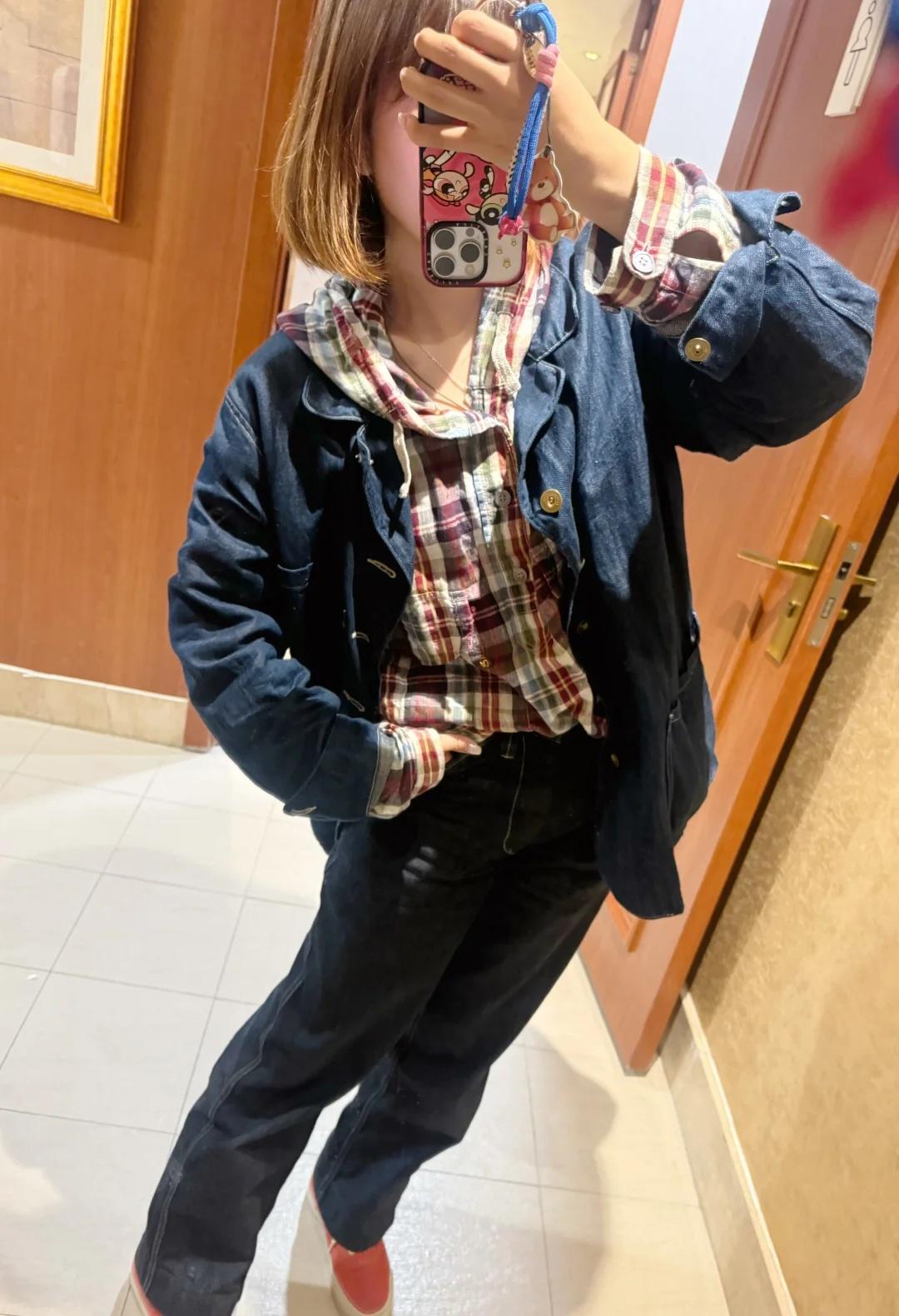 天终于放晴了,才又有了记录的心情!系统自动跳出的标题直接采用!牛仔衣兜兜转转一直在出,还是最喜欢我的老款[嘻嘻R]内搭格子罩衫亚麻质地,老衣服搭出新感觉!不买新衣的打卡还在默默坚持,越来越有信心了[机智]