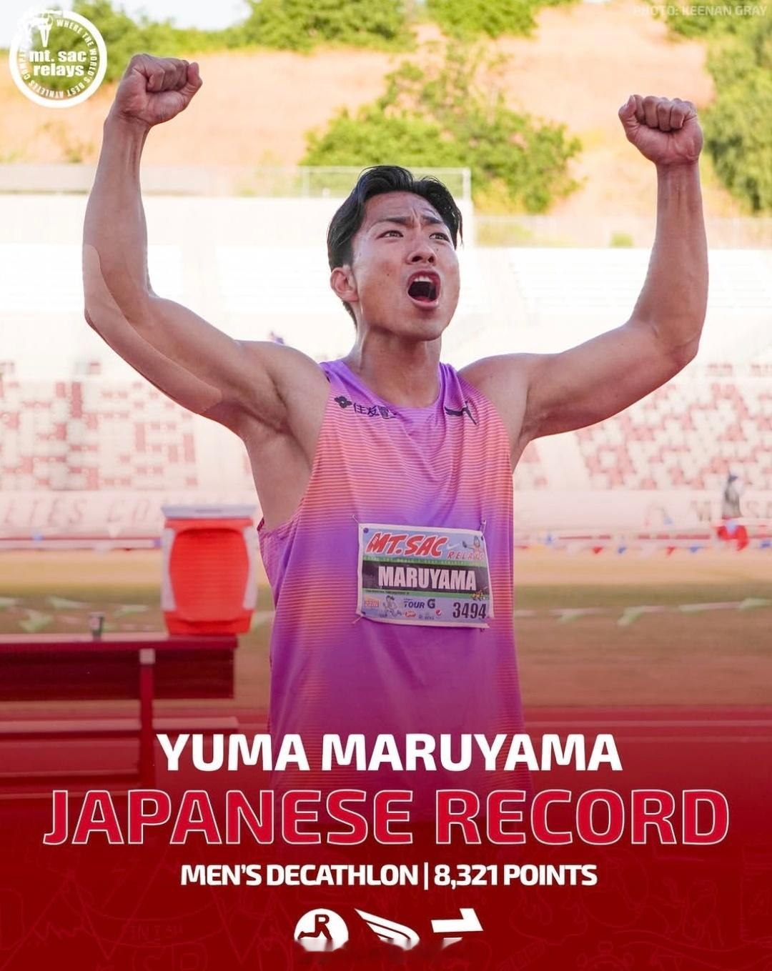Mt. SAC Relays男子十项全能,🇯🇵丸山优真8321分打破日本国家