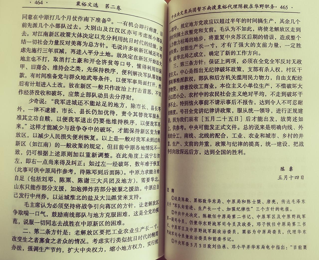 5月5日,中央发布命令,重组中原局,建立中原军区、中原野战军,陈毅、邓子恢、粟裕参加中原局工作。