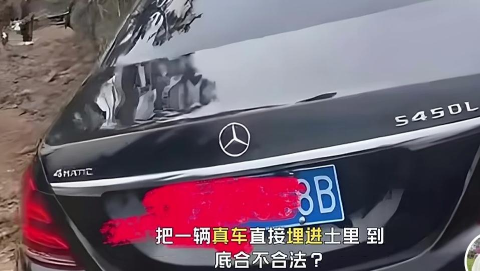 让人惊讶的是,殉葬的过程很隆重,围观的、帮忙的、大吊车的轰鸣声,抓起轿车缓缓放入早已挖好的大坑,接着三下五除二,轿车入土了!