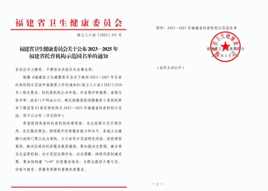 恭喜这所园被评为“福建省托育机构示范园” 喜讯传来!经福建省卫生健康委员会组织省
