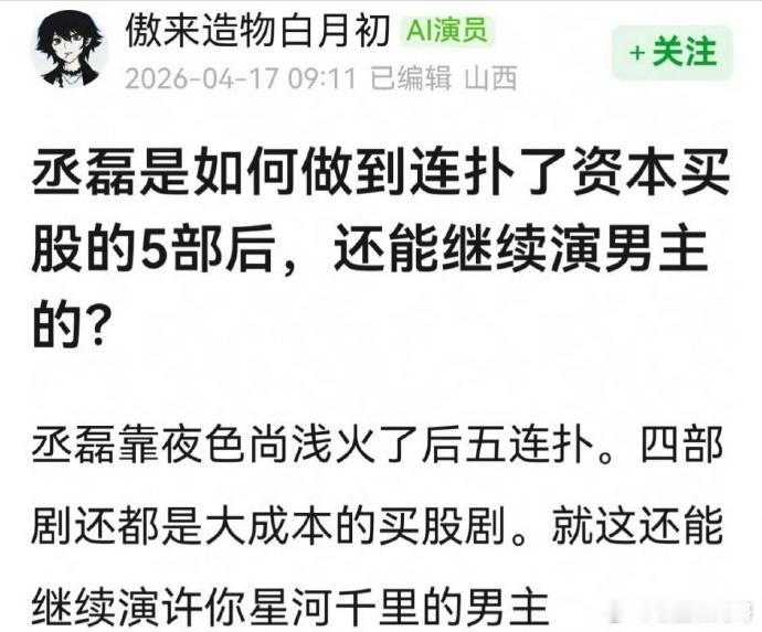 丞磊连扑后为什么还能接到男主戏?