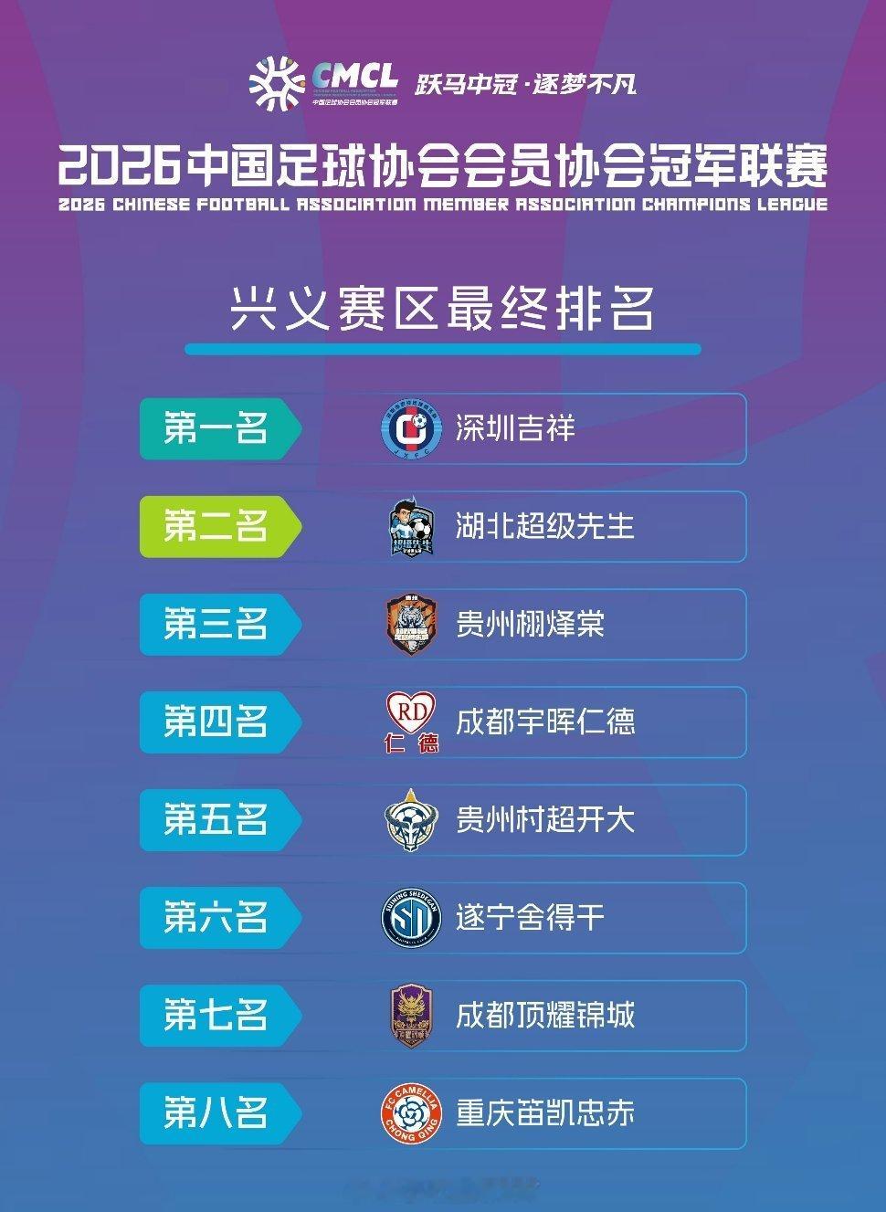 湖北超级先生0-1深圳吉祥,经过大区赛进行了三场小组赛、两场排位赛的角逐,战绩两胜两平一负,因与贵州栩烽棠胜负关系,最终位列兴义赛区第二名。