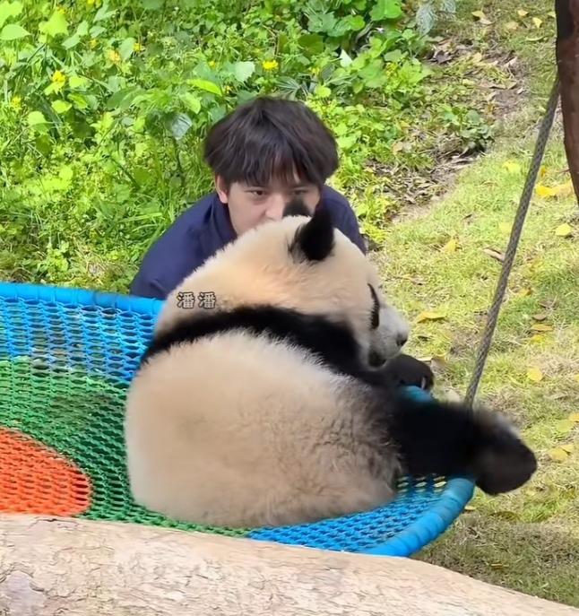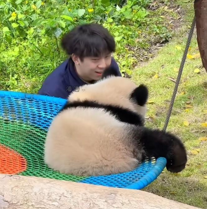 小月亮熊小鬼大,好精灵啊!项奶爸蹲在吊篮旁看着小月亮,跟小月亮商量下班回家的事情,小月亮心眼子多,怕被项奶爸突然抱住给拎回去了,它提早采取了防备措施,悄悄把右腿伸出来勾住吊篮边缘,心想:就算项奶爸突然把我抱住,我的脚勾住吊篮边缘,也会起到一点缓冲作用,然后双手再抓住吊篮边缘的话,项奶爸把我抱起来就没那么容易,我可不想那么早下班回家,我太聪明了,嘻嘻嘻![大笑][赞]小月亮 熊猫小月亮 熊猫 大熊猫 国宝 重庆动物园 (cr:@潘潘🐼)