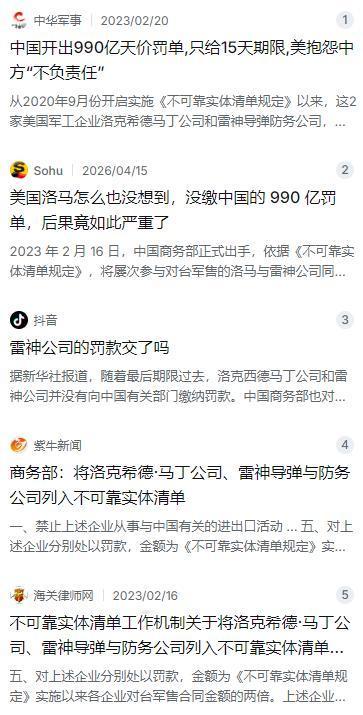 说实话,洛马当时有恃无恐也不难理解。作为美军头号承包商,F-35隐身战机、萨德反导系统、爱国者导弹,全球军工圈哪个不是它的招牌产品。在中国大陆的直接业务本来就不多,就算有一些民用领域的合作,大多是边角料。再加上美国政府明目张胆在后面撑腰,罚单刚公布不久,白宫就批了新一轮对台军售,摆明了是在示威。洛马高管们看到公告估计在会议室里都只是嗤笑一声,觉得这就是纸老虎。