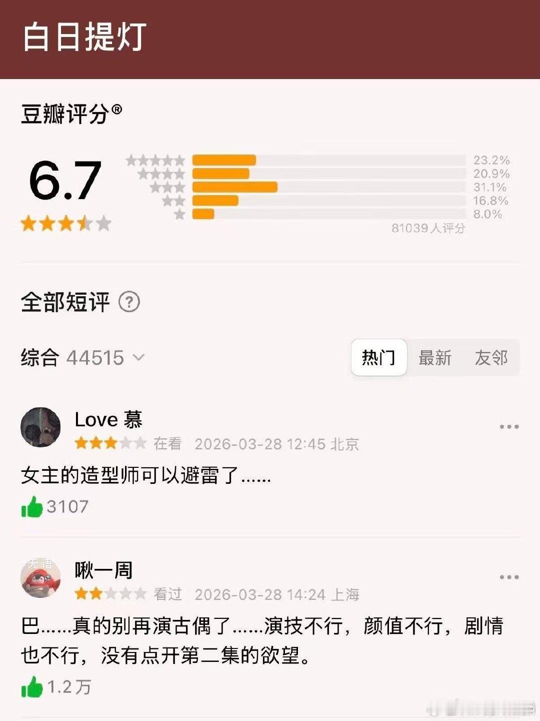 曝迪丽热巴没有一部作品七分以上迪丽热巴没有七分以上的作品 白日提灯豆瓣6.7,最