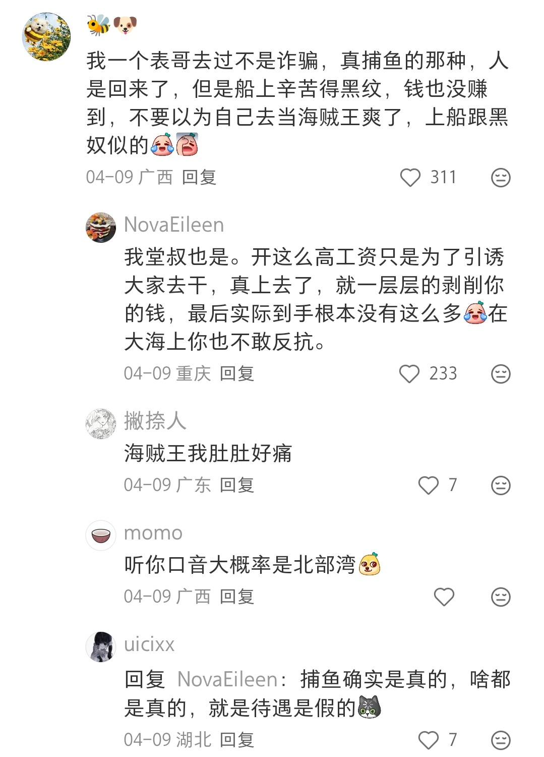 这个工资进厂也能拿到,何必冒风险去海上