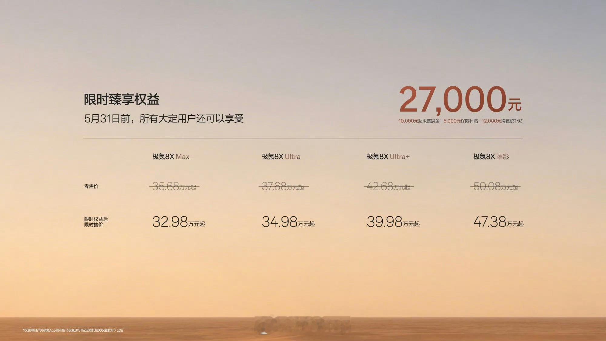 极氪8X上市,_限时权益售价32.98-47.38万元,比我预想的还低一些,诚意给的很足。之前大哥9X已经打开了高端市场,8X能否打动家庭用户或者驾驶爱好者的芳心呢?极氪8X上市限时售价32.98万元起新公路之王极氪8X正式上市极氪8X极氪8X曜影